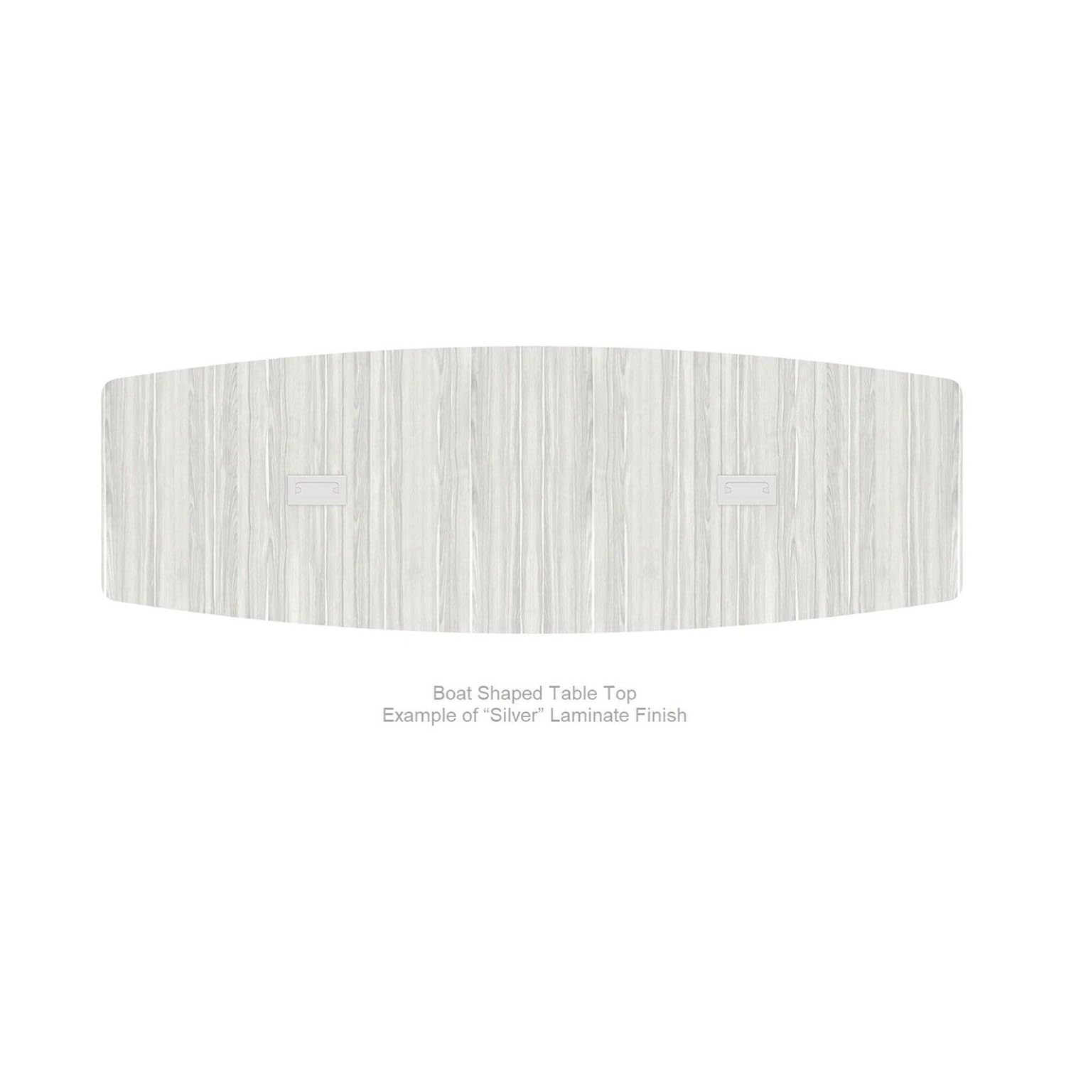 - 10 ft Conference Table Boat Shaped Details: -Approx. 118''L x 47-32''W x 29''H / Convenience of Power Modules Built Into Table!