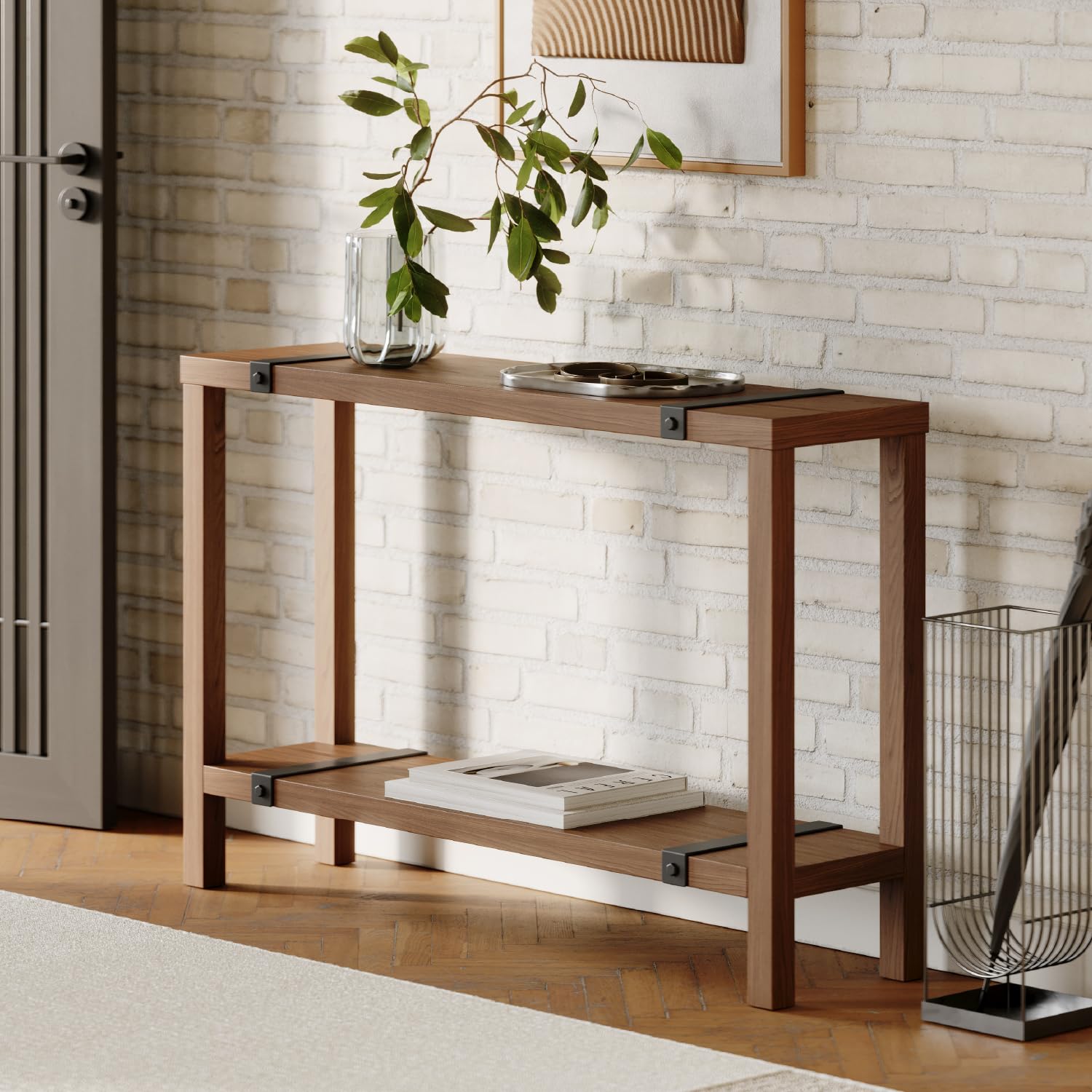 - Functional and Stylish - Our small hallway table features powder-coated metal accents for a smooth and elegant finish. It also doubles as a storage solution and can hold up to 220 pounds on the top and support 165 pounds on the bottom shelf