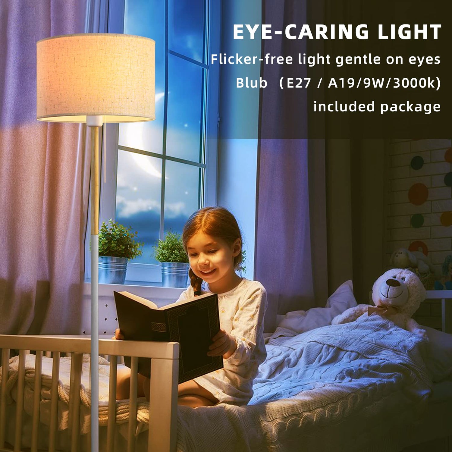 - 【Linen Fabric of Unique Texture】 Our mid century modern floor lamp integrates selected linen fabric lampshade, which can produce a warm, natural & smooth light – more appealing than other shades that will crack & yellow over time. The warm light of this standing lamp creates a comfortable, calming ambiance - let you relax during stressful work.