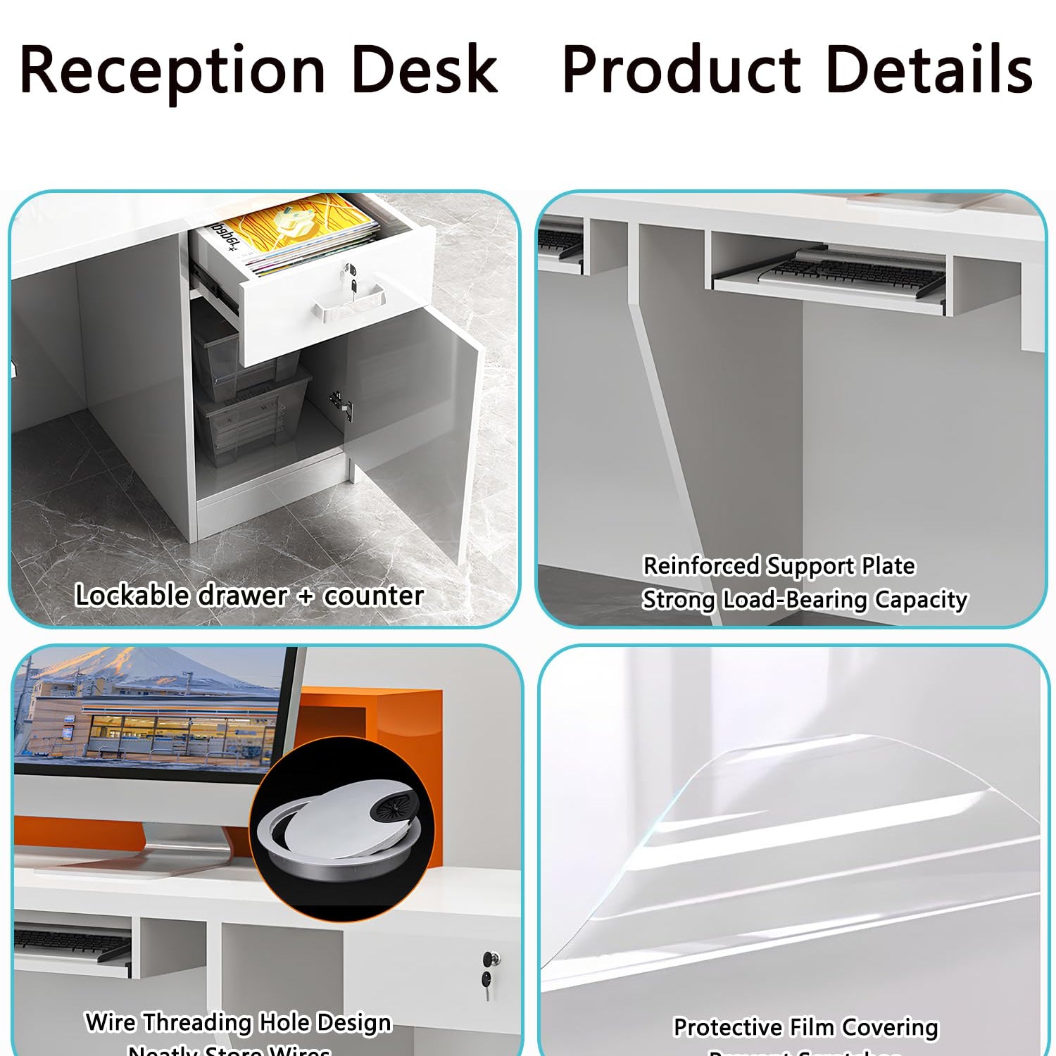 - Modern Design for Versatile Applications: Featuring a sleek and functional layout, this modern reception desk fits seamlessly into a wide range of environments. Ideal for office front desk reception, check in desk, or salon counter, it enhances the image of your business while improving efficiency