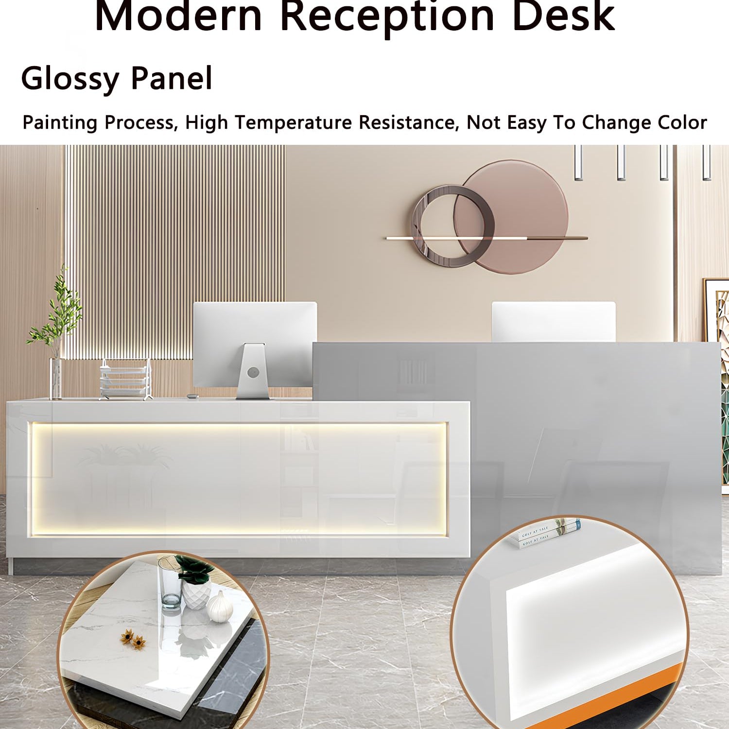 Modern Reception Desk with Counter,Commercial Receptionist Desk with LED Light & Lockable Drawer,Modern Retail Checkout Sturdy & Well Built for Lobbies,Office,SOHO,Shop