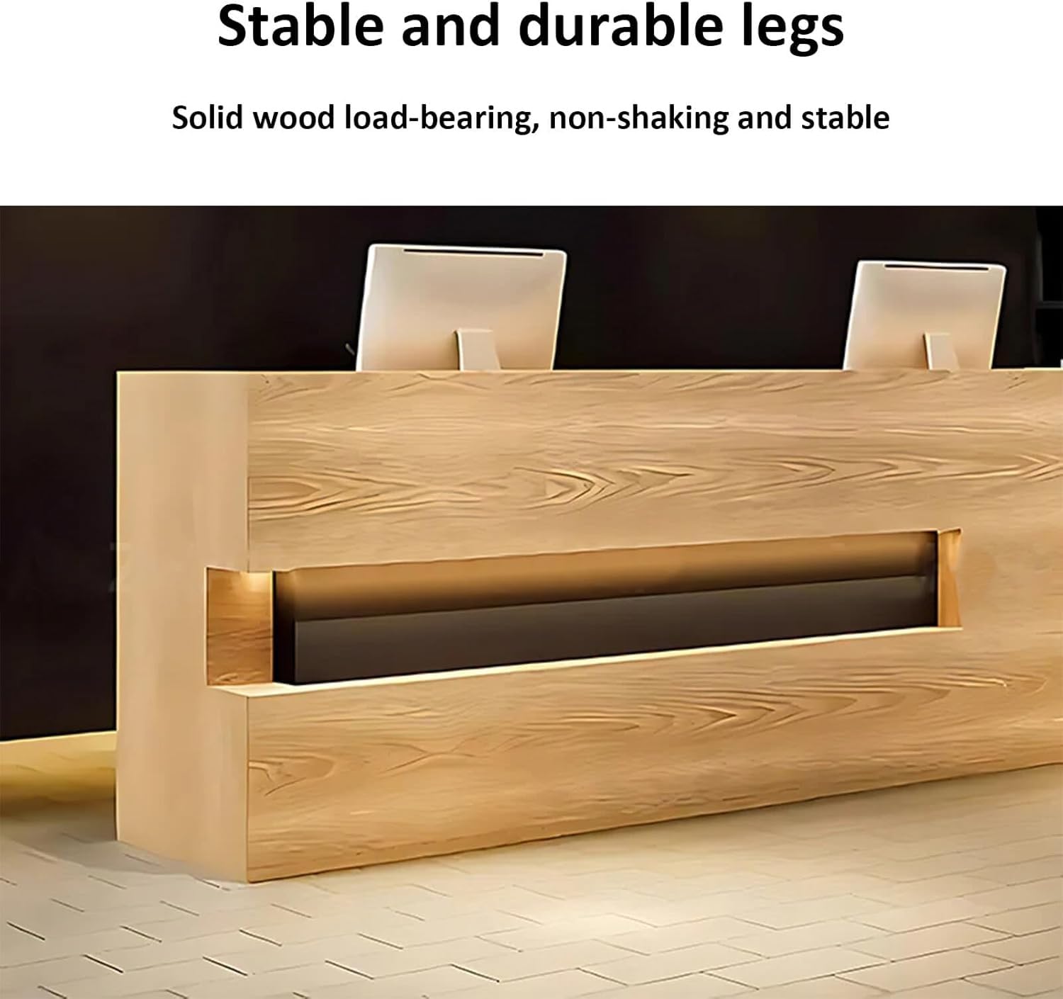 - 【Solid Wood Legs for Maximum Stability and Longevity】Built with sturdy wooden legs, this front desk reception counter offers unbeatable stability and long-term durability. No more worrying about wobbling or shifting — just a reliable, stylish centerpiece that stands strong for years to come.