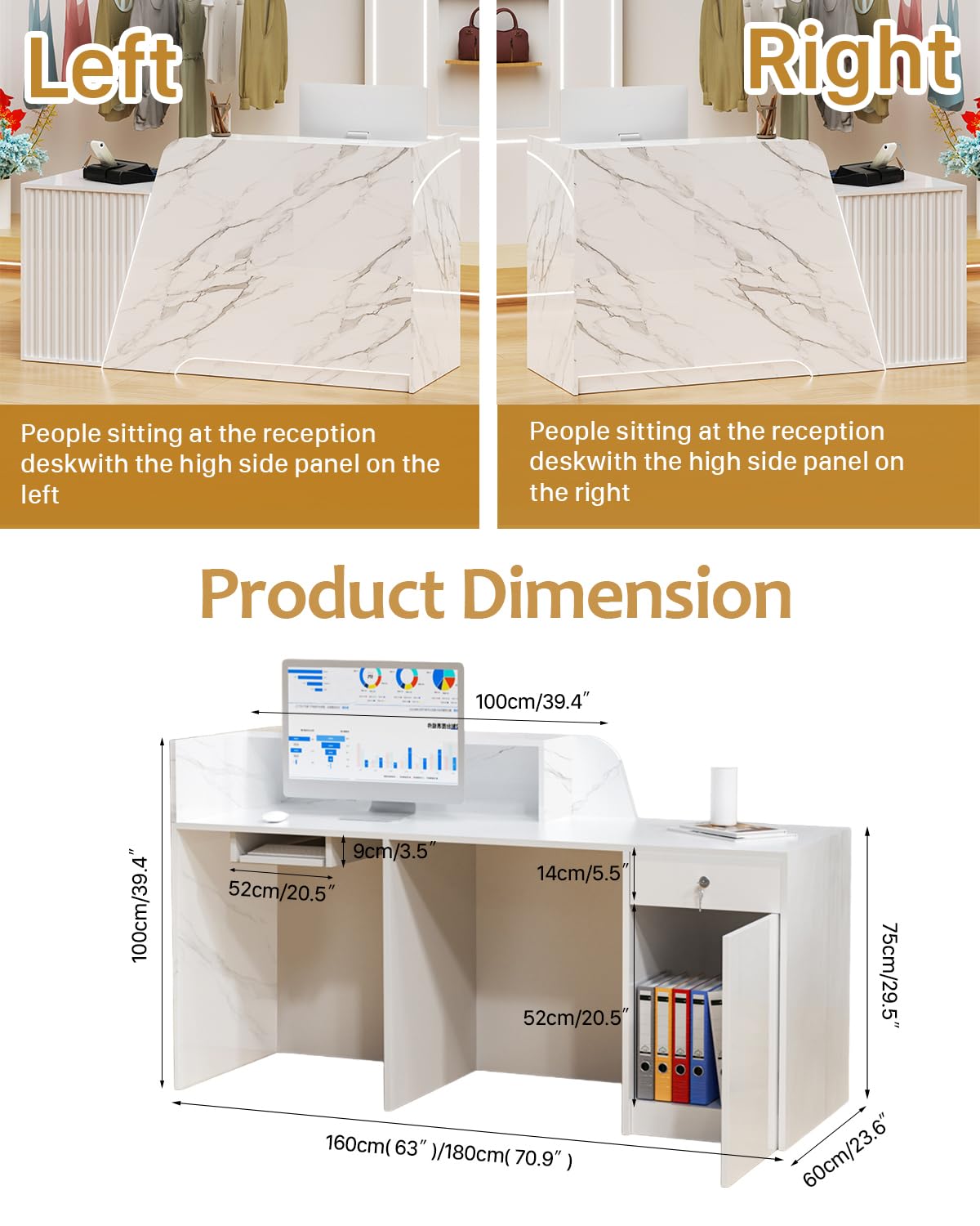 - Spacious Dual-Person Design: Choose between two sizes—63-inch or 70.9-inch length—to perfectly fit any commercial space, offering ample legroom and a compact footprint ideal as a small reception desk or front desk for offices, salons, or retail counters. This versatile reception desk with counter adapts seamlessly to settings like nail salons or pet stores, ensuring efficient workflow as a business desk or checkout counter for dual staff