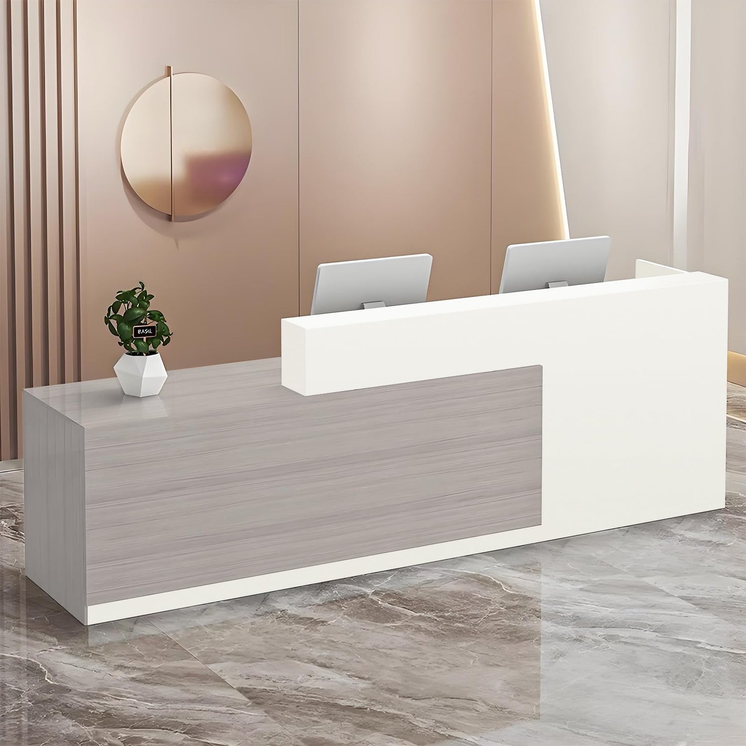 - Modern & Sleek Reception Desk:Clean lines and a contemporary wood finish create a professional first impression—perfect for salons, offices, and retail spaces.