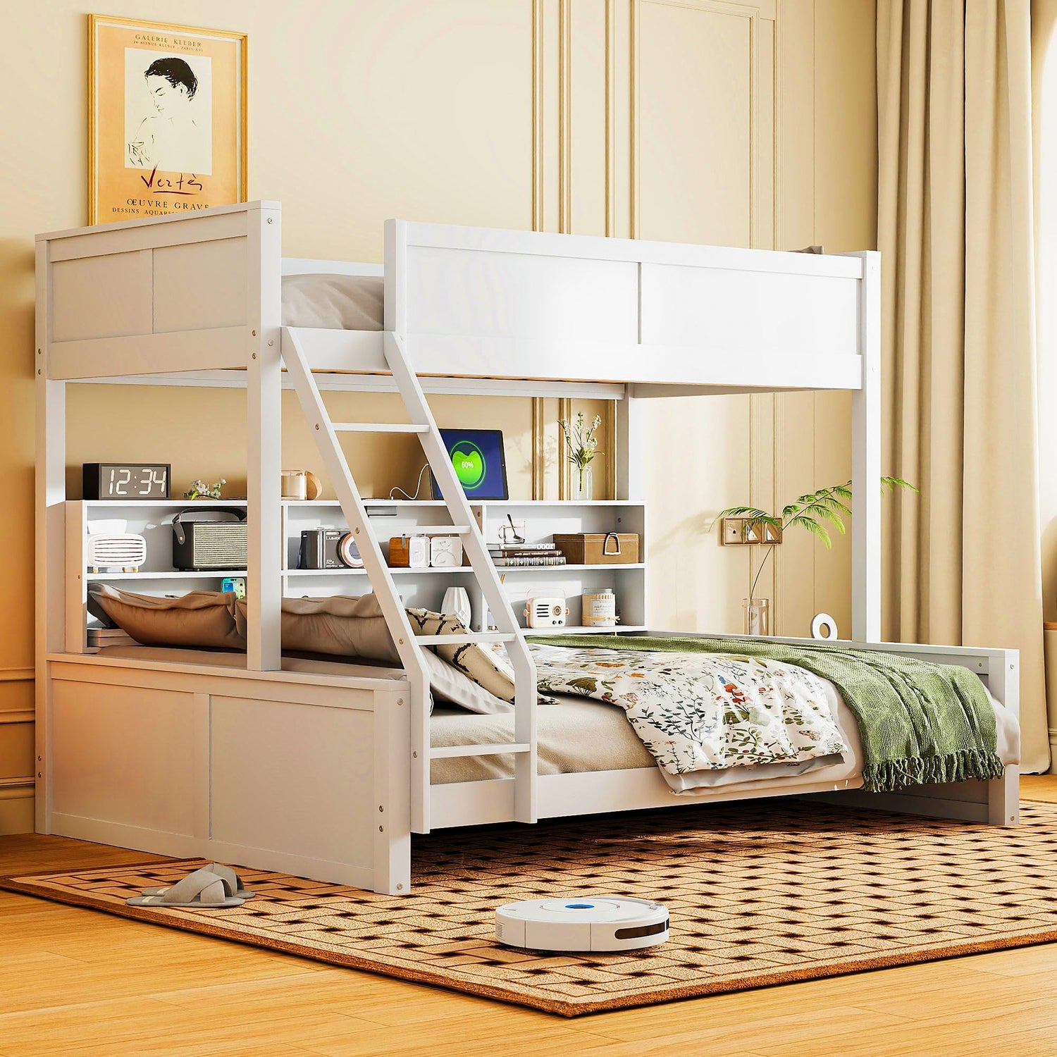 Modern Twin XL Over Queen Bunk Bed with Storage Cabinets and USB Ports,for Kids Teens Adults Bedroom Use (Antique White#x, Twin XL Over Queen)