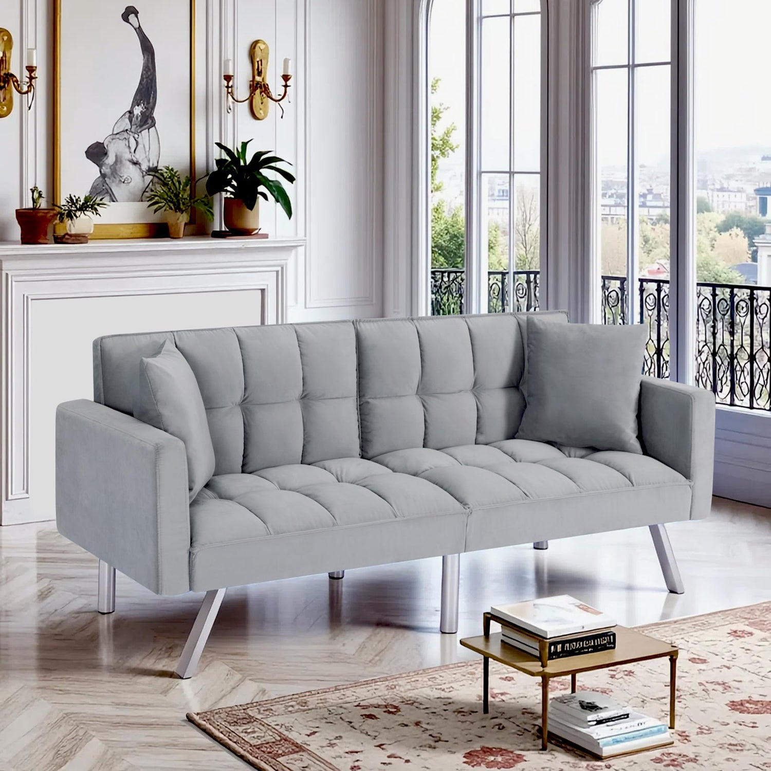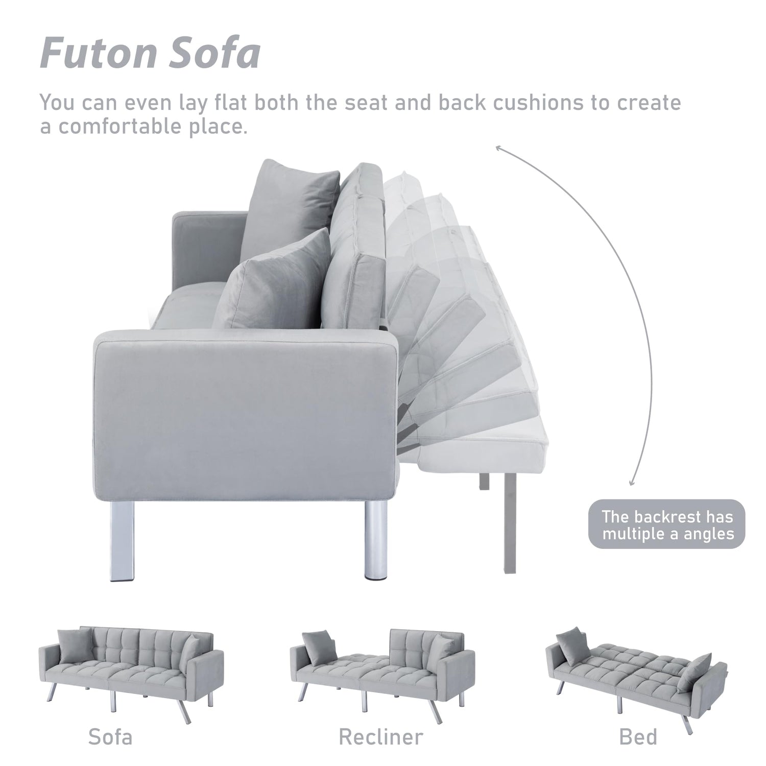 Modern Velvet Futon Sofa Bed,Convertible Sleeper Loveseat with 4 Folding Backrest,78" Comfy Deep Seat Cloud Couch Bed for Living Room Apartment Office (Light Grey)