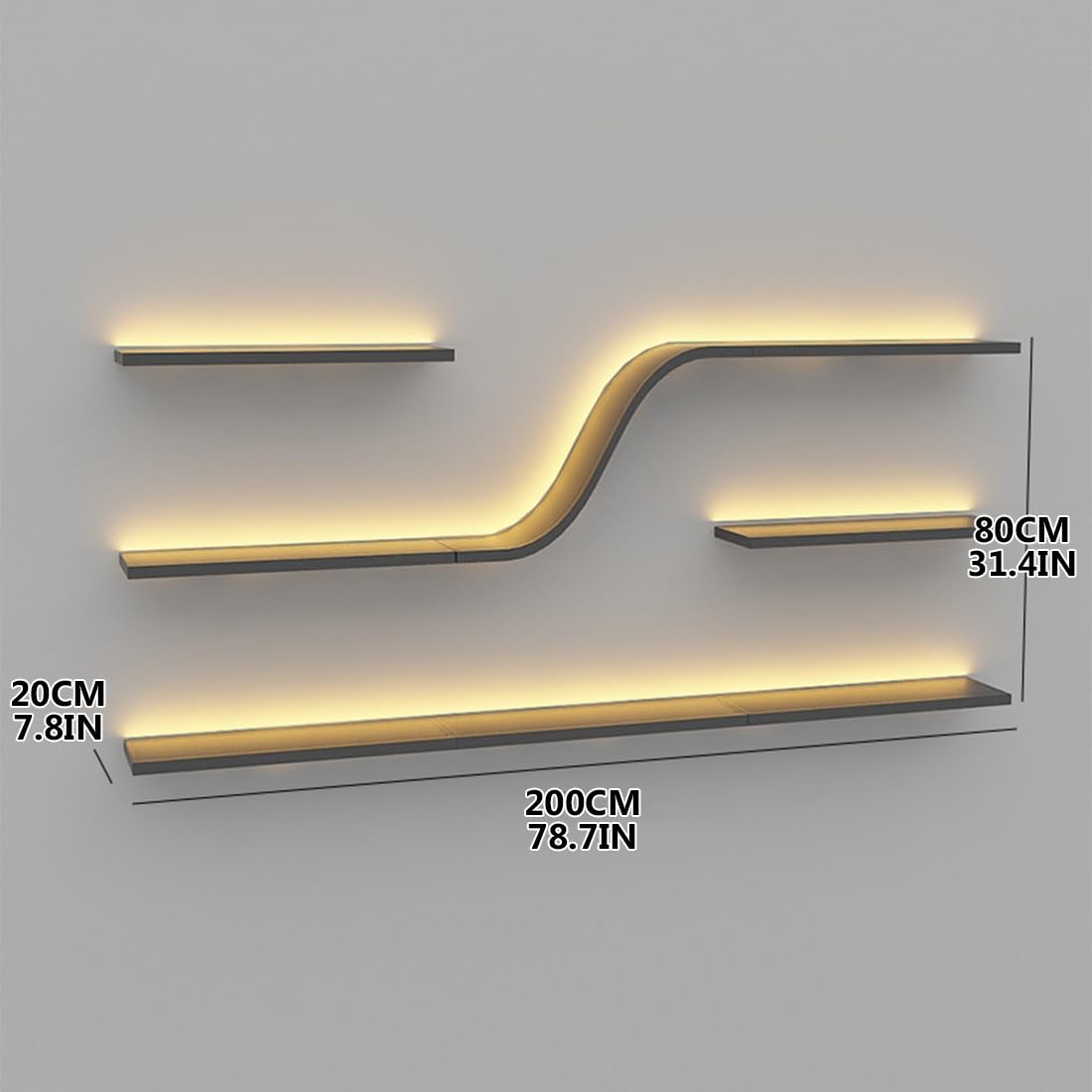 Modern Wall Mounted Wine Rack w/LED Light, Metal Wall Bar Shelves Storage Holder w/Glass Holder, Hanging Large Liquor Shelf for Liquor Bottles for Home Bar Dining Room(Yellow light,200CM/78.7IN)