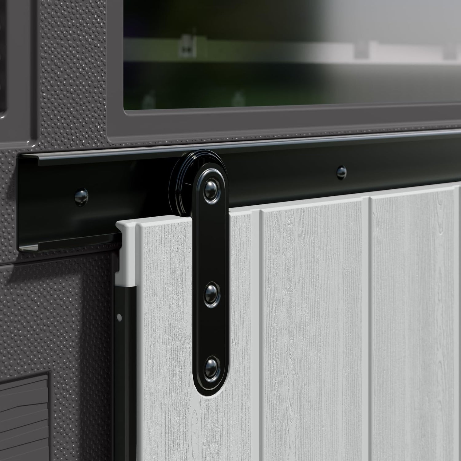 - Sliding Barn door system ideal for space-saving storage of lawn and garden and much more (Door system installation cannot be inverted).