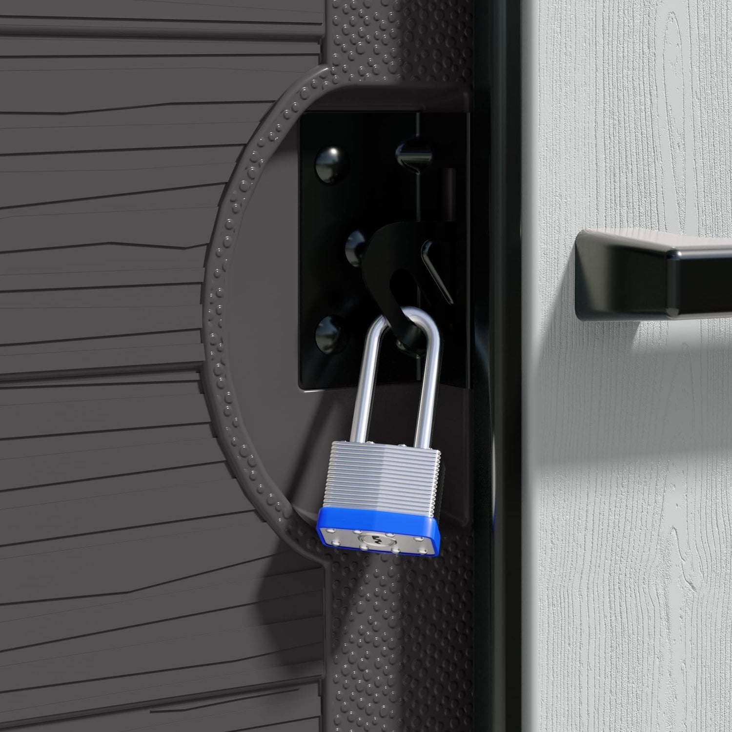 - Pad-lockable sliding door keeps contents safe and secure (lock not included).