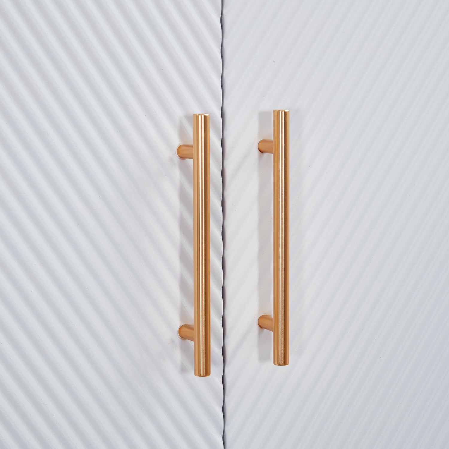 • [Extra storage space] - Maximize your bedroom's space with this cleverly designed wooden wardrobe.Tailored for bedrooms with a modern flair, this armoire fits right in. The gold-tone handles not only elevate its appearance but also make it easy to use. Keeping it pristine is a snap; a dusting cloth is all you need for cleaning.