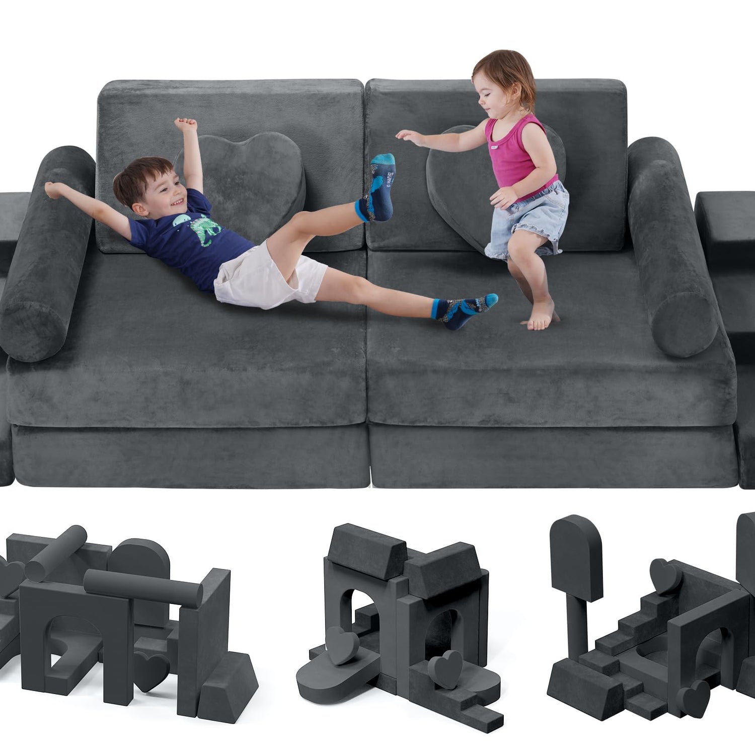 Modular Play Couch for Kids Toddler - 14PCS Kids Sofa to Boost Creativity, Boys and Girls DIY Creativing Playroom Couch for Playroom Bedroom Nursery