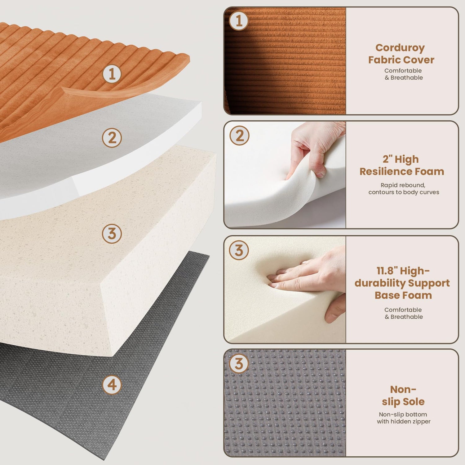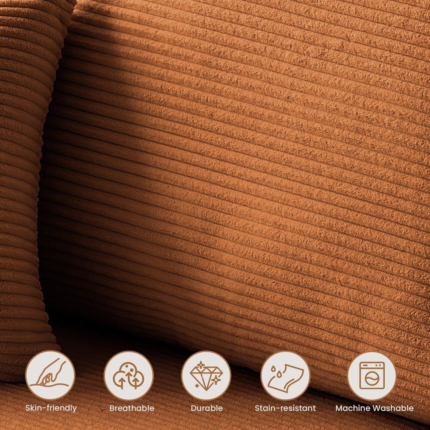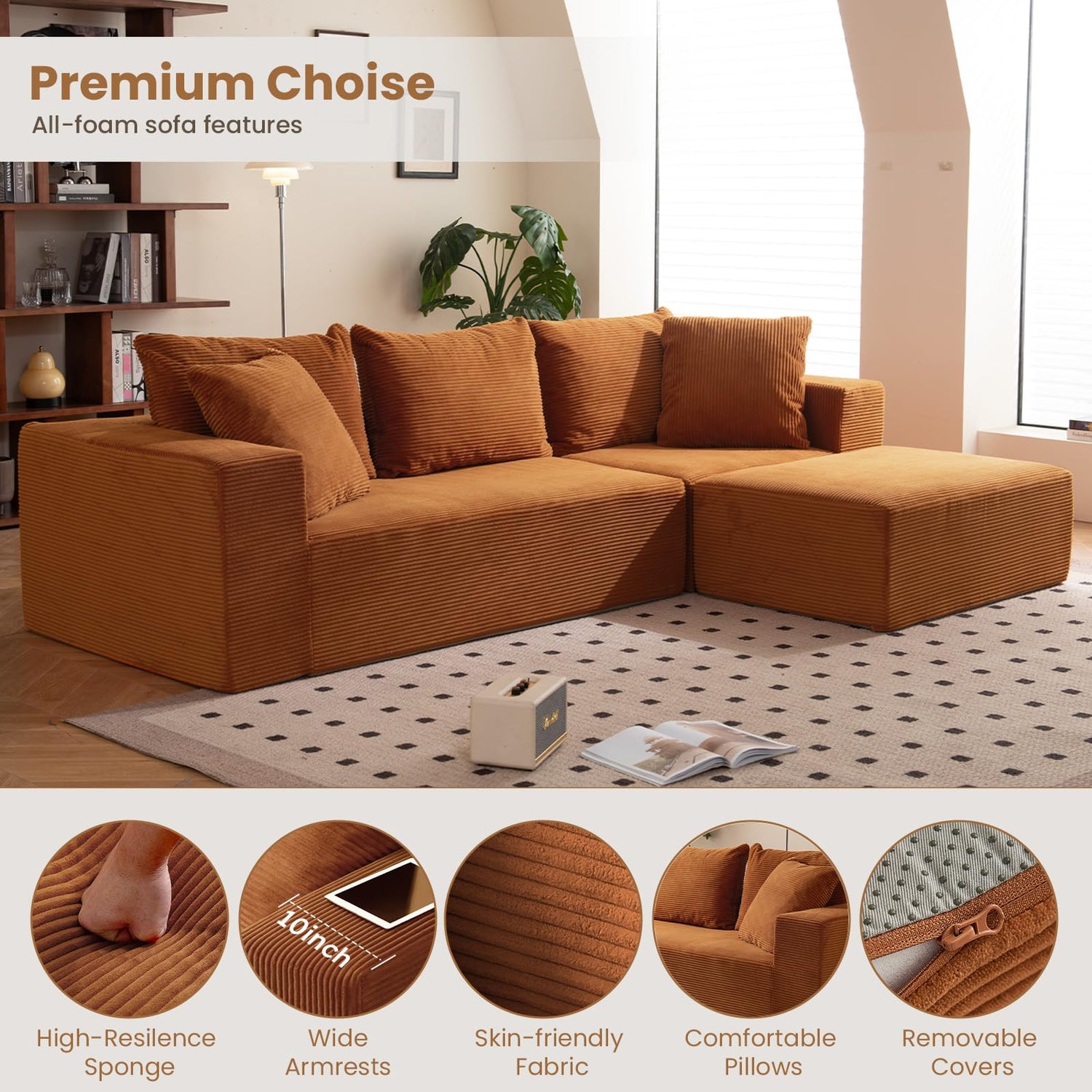 - Pet & Kid-Friendly: Upholstered in soft, anti-wrinkle, and stain-resistant corduroy fabric, this cloud couch sectional has no sharp corners or wooden legs, making it a safe and low-maintenance choice for families with kids or pets
