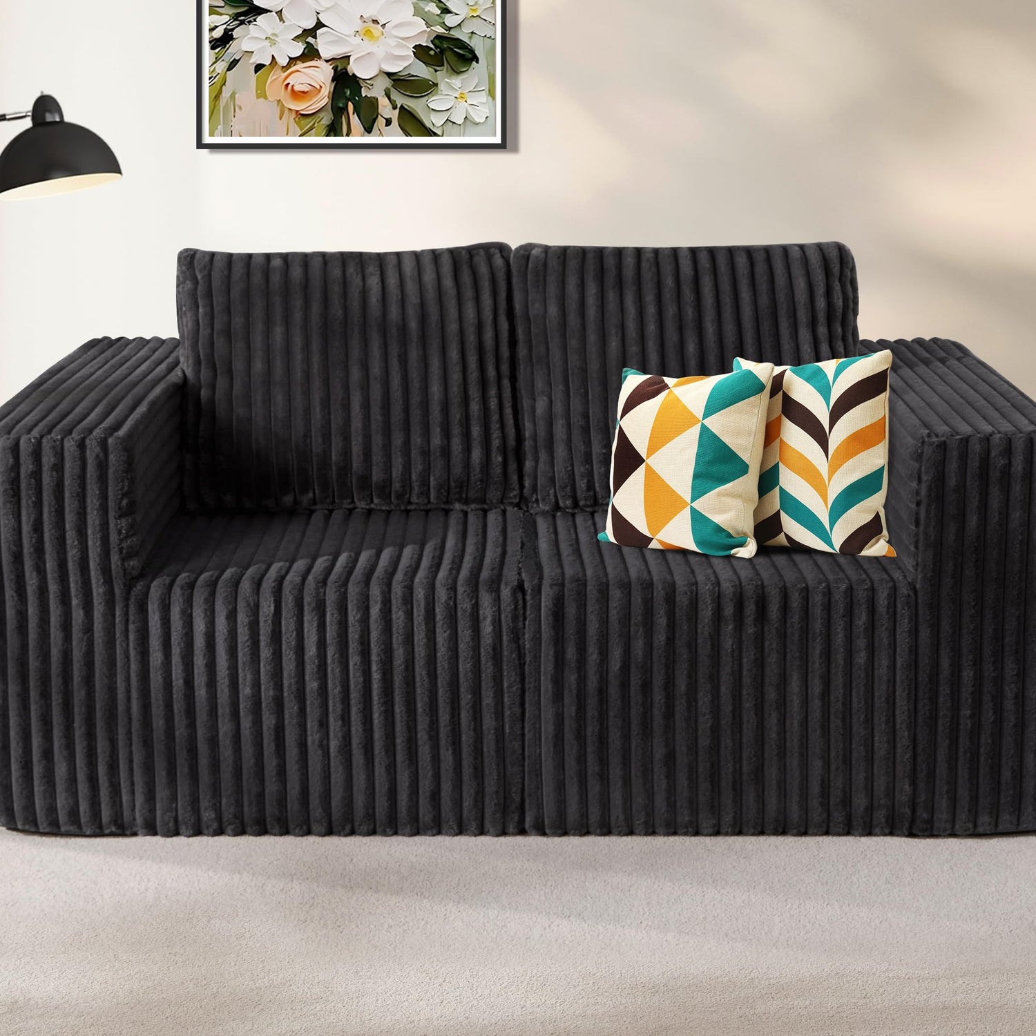 Modular Sectional Sofa 2 Seater Loveseat Modular Sofa Couch with Deep Seat Memory Foam Cloud Sofa Chair with Pillows Oversized Sectional Sofa for Living Room Bedroom (Strip Grey, Loveseat)