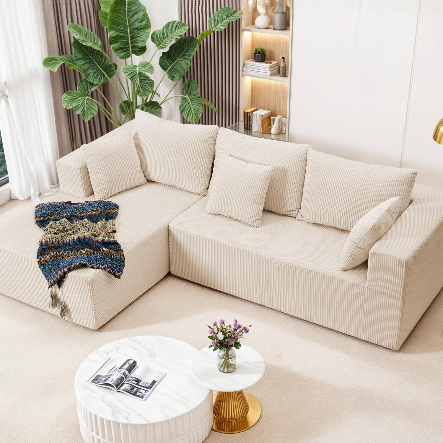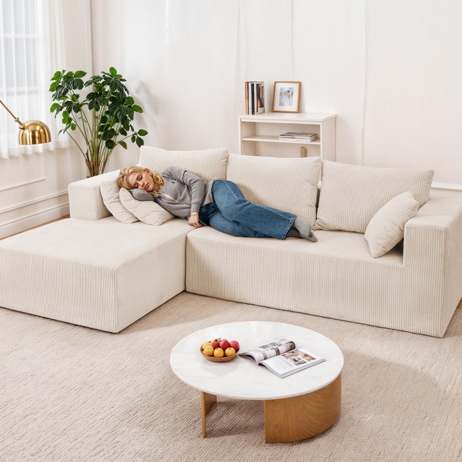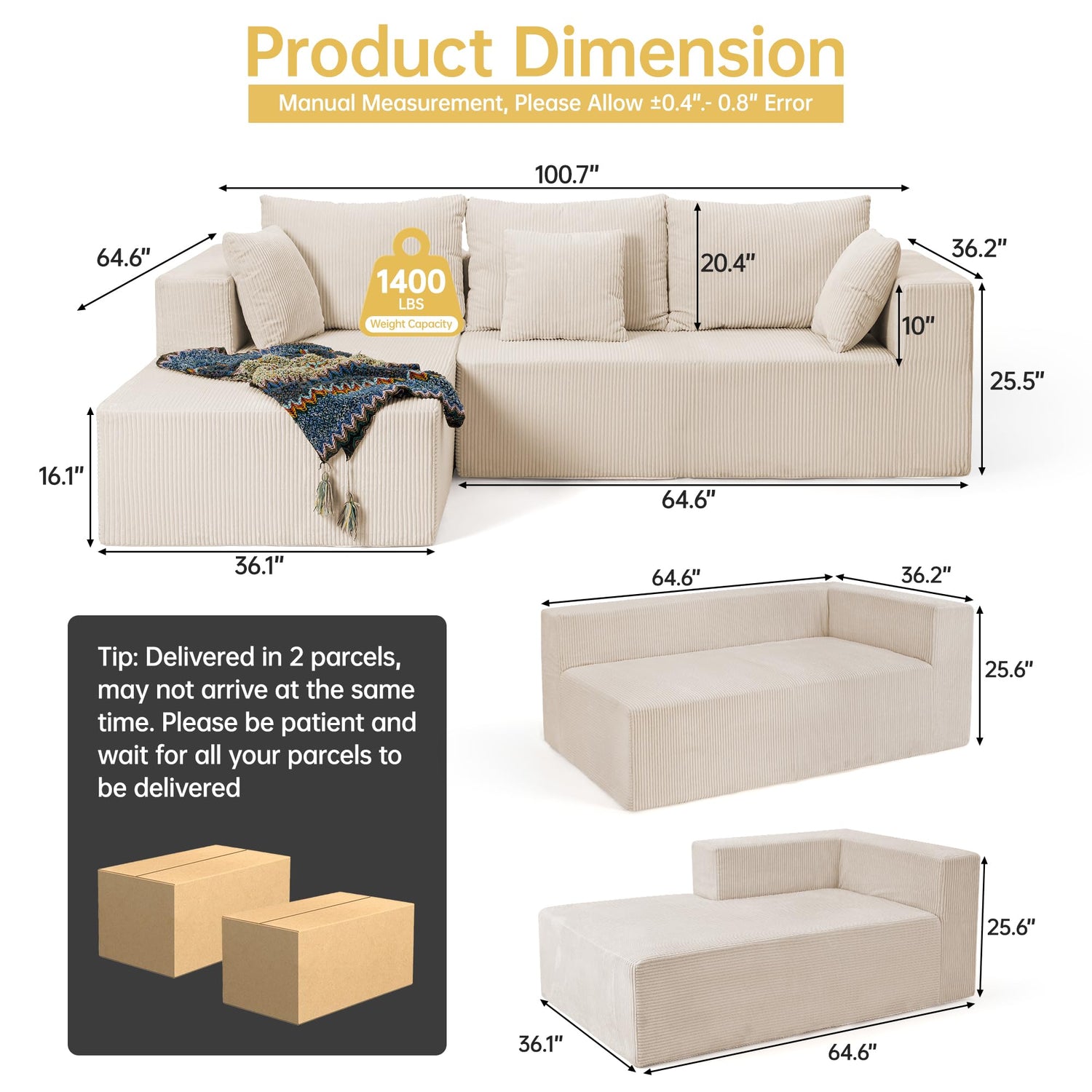 - No Assembly Required – Unbox & Relax: Setup is effortless—simply unbox the vacuum-sealed package, fluff the L-shaped couch, and let it expand for 2–3 days to regain its original shape.[TIPS:Due to the sponge rebound, when just unpacked, the size may deviate from the picture size]