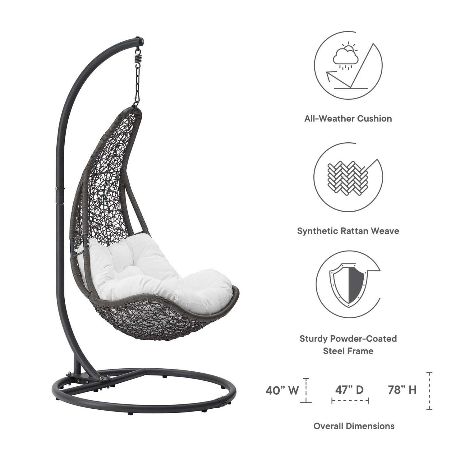 - STYLISH LOUNGE SPOT - Enjoy sunshine and warm weather in this swing chair set. The all-weather cushion comes with a machine-washable cover that's both water and fade resistant granting lasting comfort