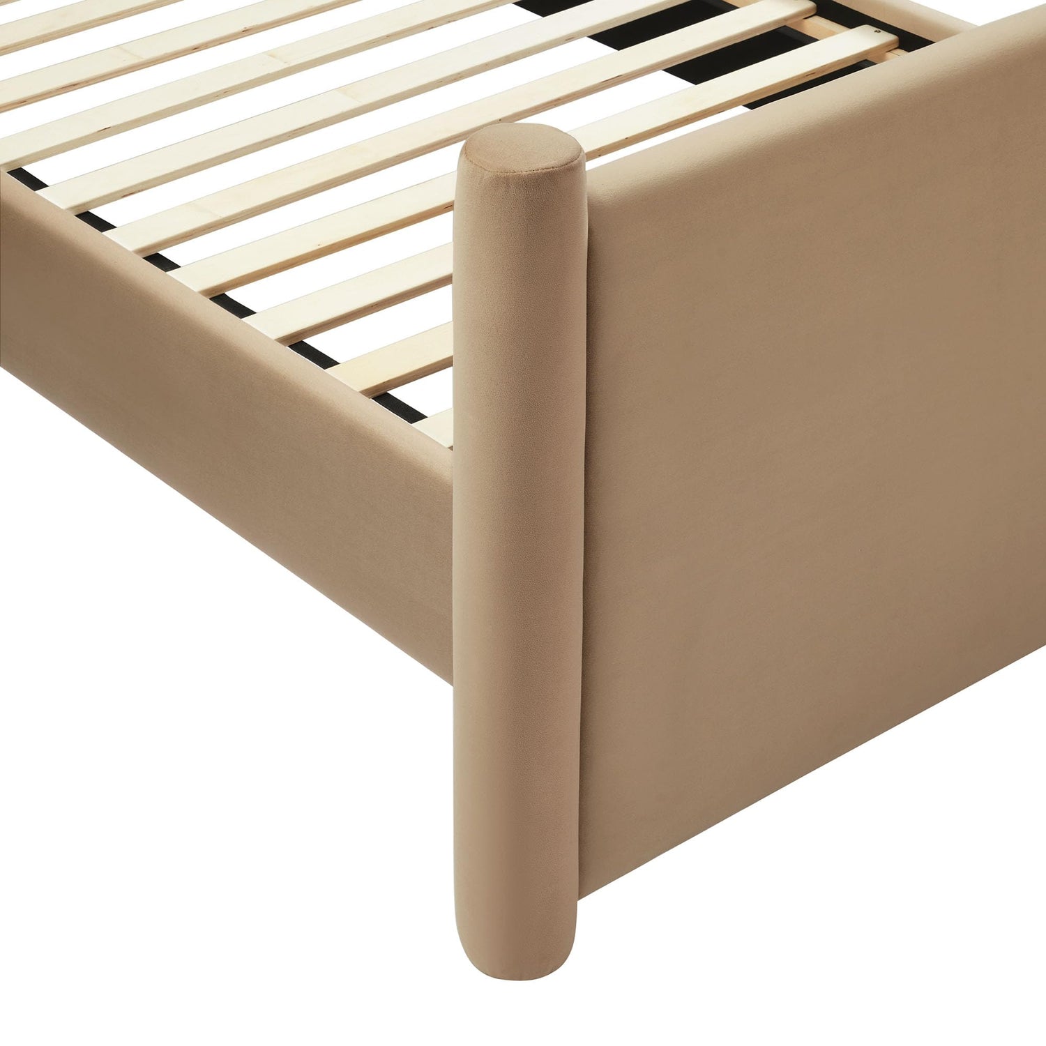 Modway Rael King Platform Bed Frame with Upholstered Headboard and Footboard in Taupe – Stain-Resistant Performance Velvet King Size Bed with Rounded Posts