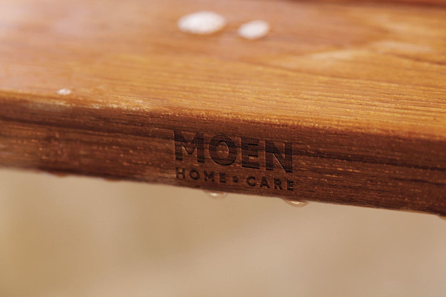 Although showering can be a relaxing activity, the risk of losing balance and falling can be a concern. Fortunately Moen Home Care has a solution. Our new wall-mounted fold down teak shower seat provides an added level of security for those who need it. And when it’s not in use, it folds up creating a thin, compact profile. Designed with a rugged aluminum frame and water resistant teak wood, the Moen Fold Down Shower Seat is built to last, shower after shower. Year after year. Moen is dedicated to designing and delivering beautiful products that last a lifetime. Moen offers a diverse selection of kitchen faucets, kitchen sinks, bathroom faucets and accessories, and showering products. Moen products combine style and functionality with durability for a lifetime of customer satisfaction. Clean the seat with a warm damp cloth.