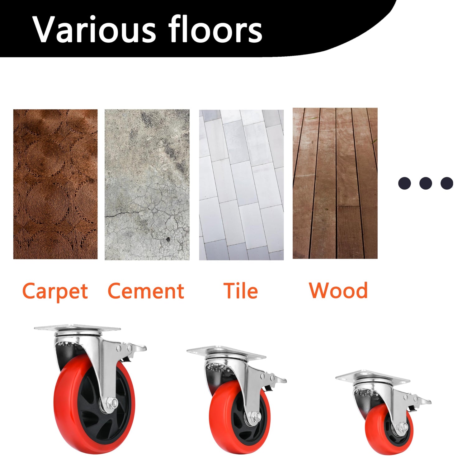 - Stable and quiet: The heavy-duty casters are made of high-quality polyurethane material, which is wear-resistant and vibration reducing on various floors. Especially on uneven surfaces, a smooth, quiet, and scratch free sliding experience can be achieved.