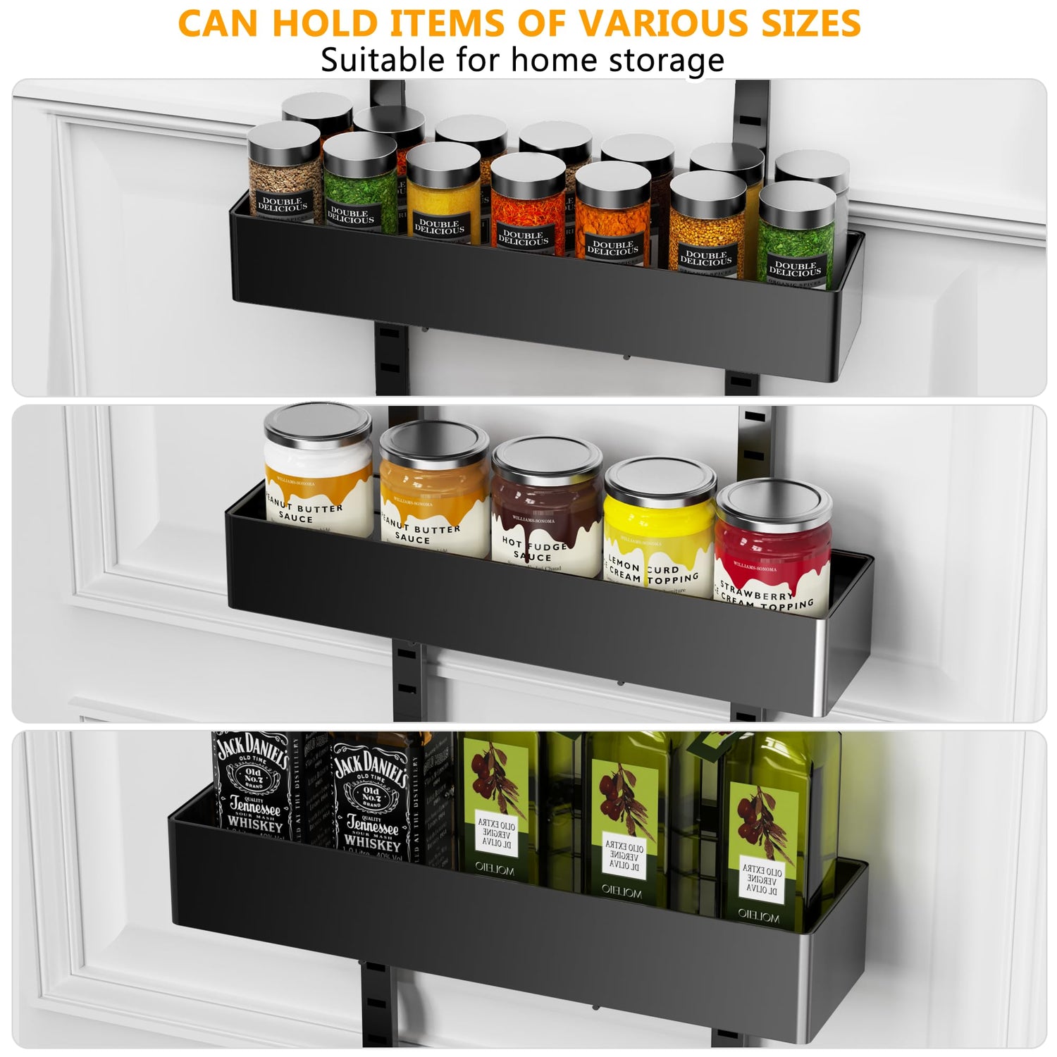 - Durable & Strong: Made with high-quality, durable metal, our pantry organization can withstand the weight of heavy cans and jars, keeping your items secure and preventing them from falling off. It’s your home organization and kitchen essentials.