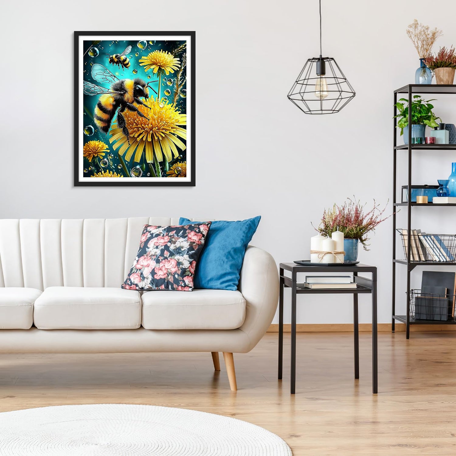 MOGTAA Bee Diamond Art Painting Kits for Adults, Bee Flowers Diamond Painting Kits for Beginners, DIY 5D Diamond Dots Kits Gem Painting for Home Art Decor 12x16 inch