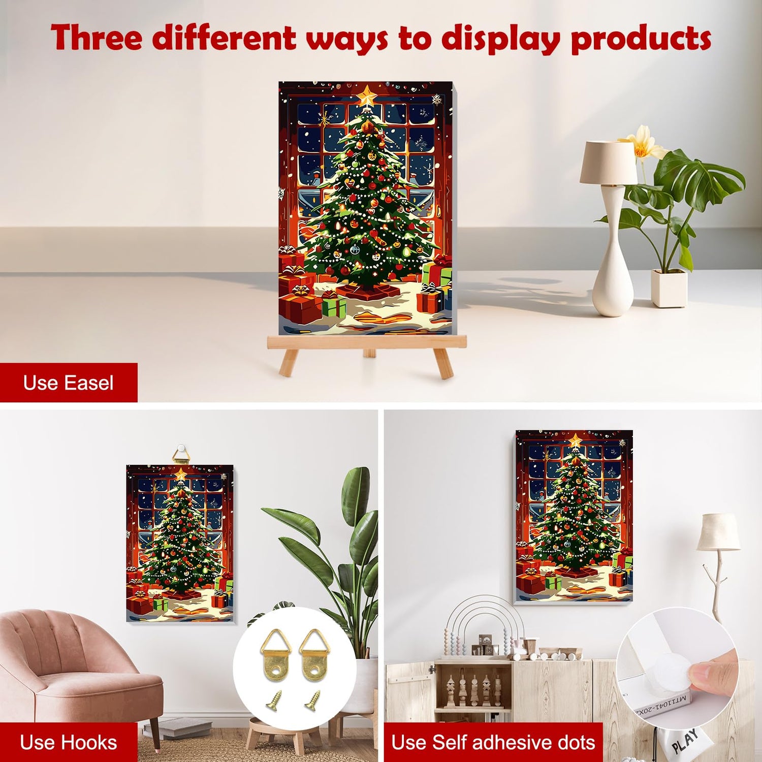 - What You Will Get: Each paint by number kit includes a wooden frame canvas, a wooden easel, three different size of paintbrushes, a set of colorful acrylic pigments, a set of nail hooks, a reference picture and eight self adhesive dots