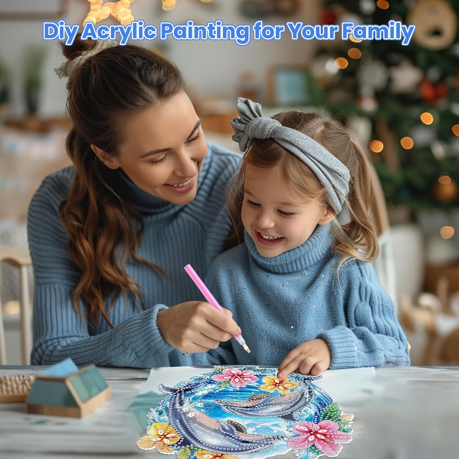 MOGTAA Dolphin Diamond Art Hanging Pendant Kits, 5D Special Shape Diamond Art Kits for Adults, Crystal Rhinestones Flowers Diamond Painting Gem Art for Home Garden Wall Decor