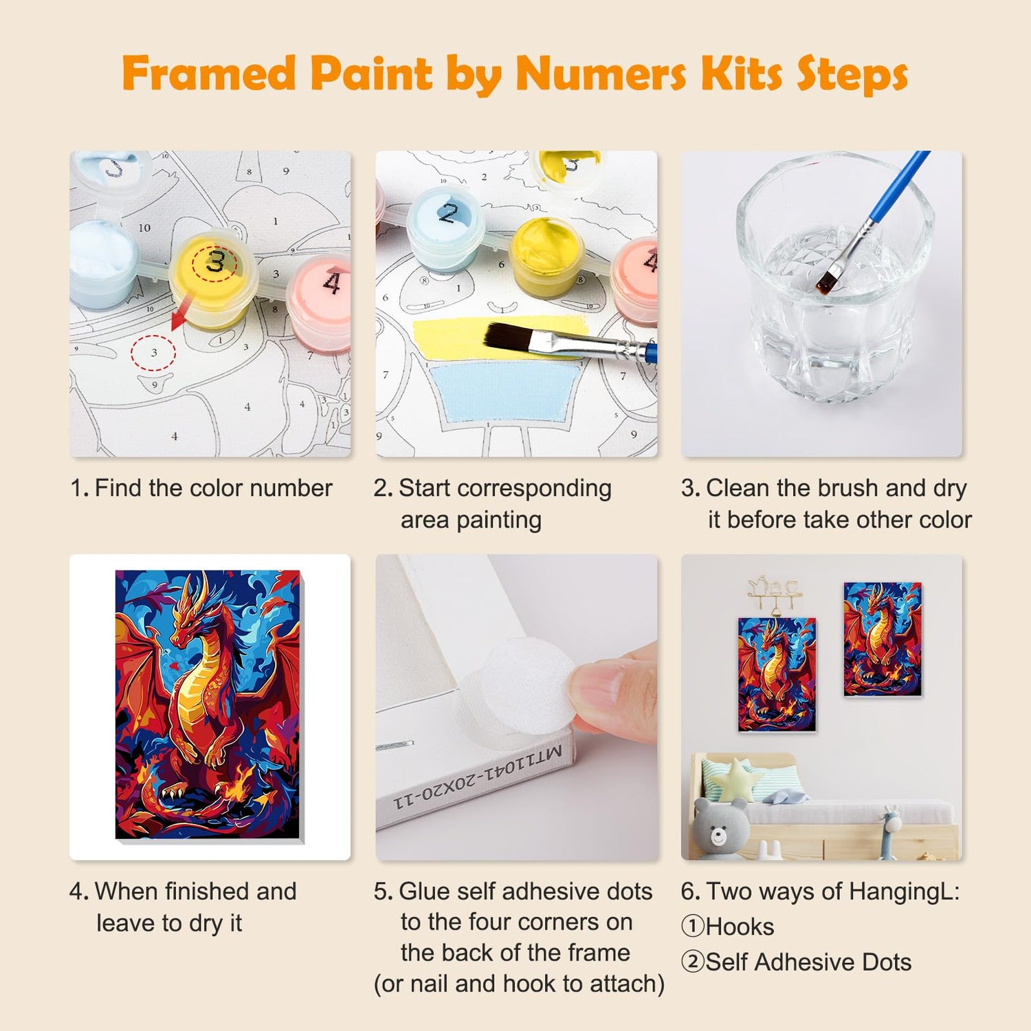 MOGTAA Dragon Paint by Numbers Kit for Adults Beginners with Frame, Animal Adult Paint by Number Kits on Canvas with Easel, Easy DIY Oil Painting Kits for Home Decor, 8x12in