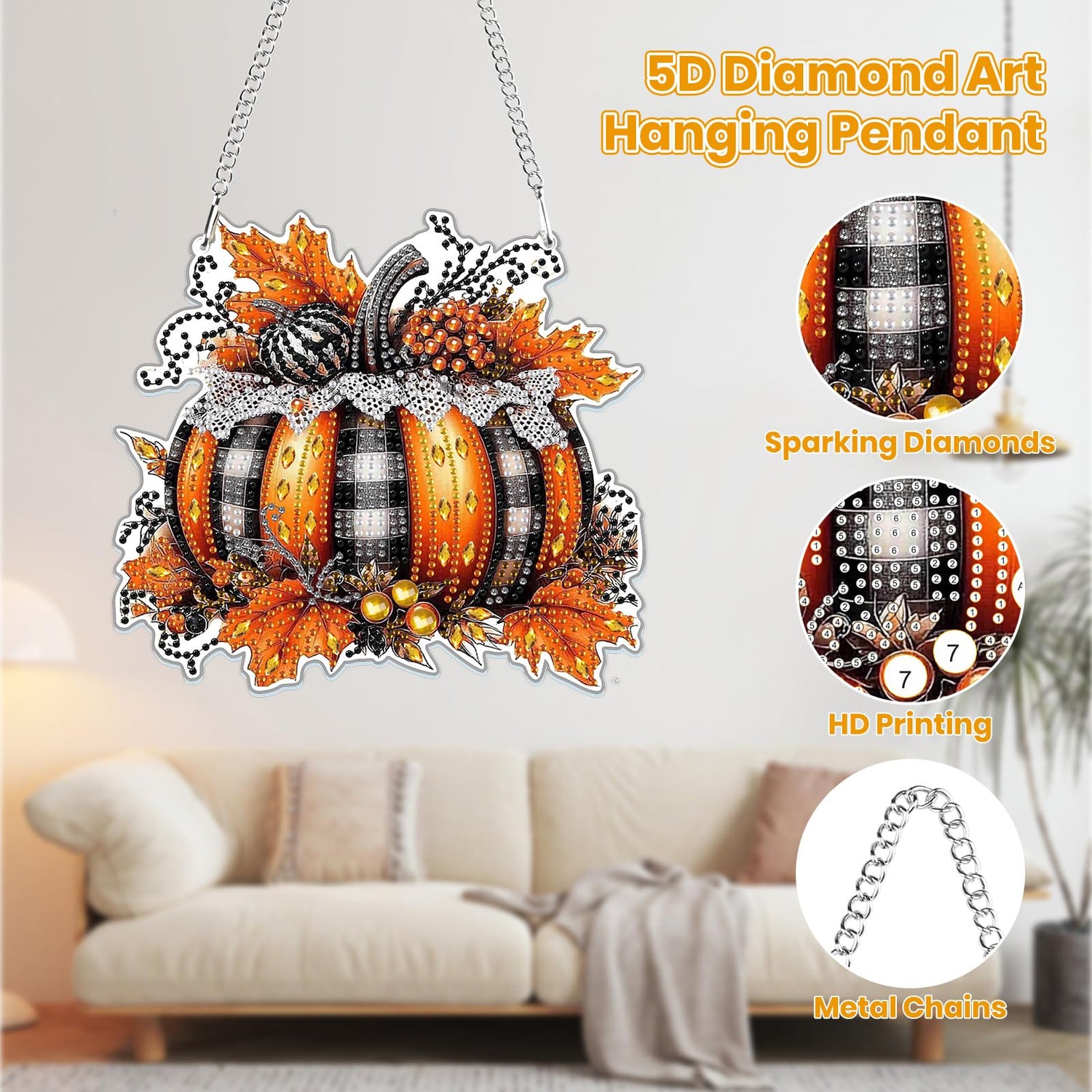 MOGTAA Fall Pumpkin Diamond Art Hanging Pendant Kits, Pumpkin Diamond Art Kits for Adults, 5D Special Shape Diamond Painting Gem Art for Home Garden Wall Decor