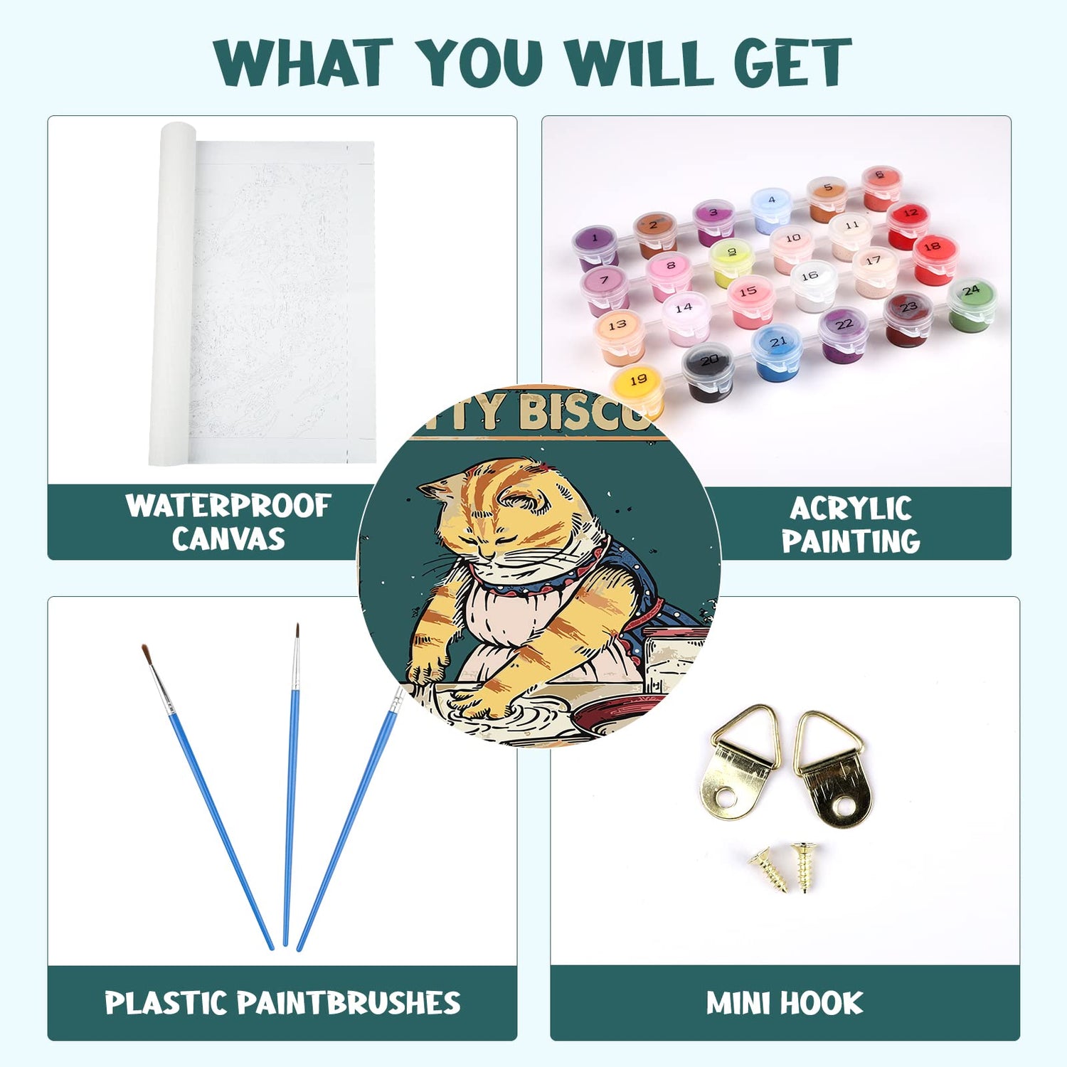 MOGTAA Inspirational Paint by Numbers, Cat Oil Painting Kits for Adults Kids, DIY Inspirational Paint by Numbers on Canvas Drawing Paintwork with Paintbrushes Acrylic Pigment for Home Decor (40x50cm)