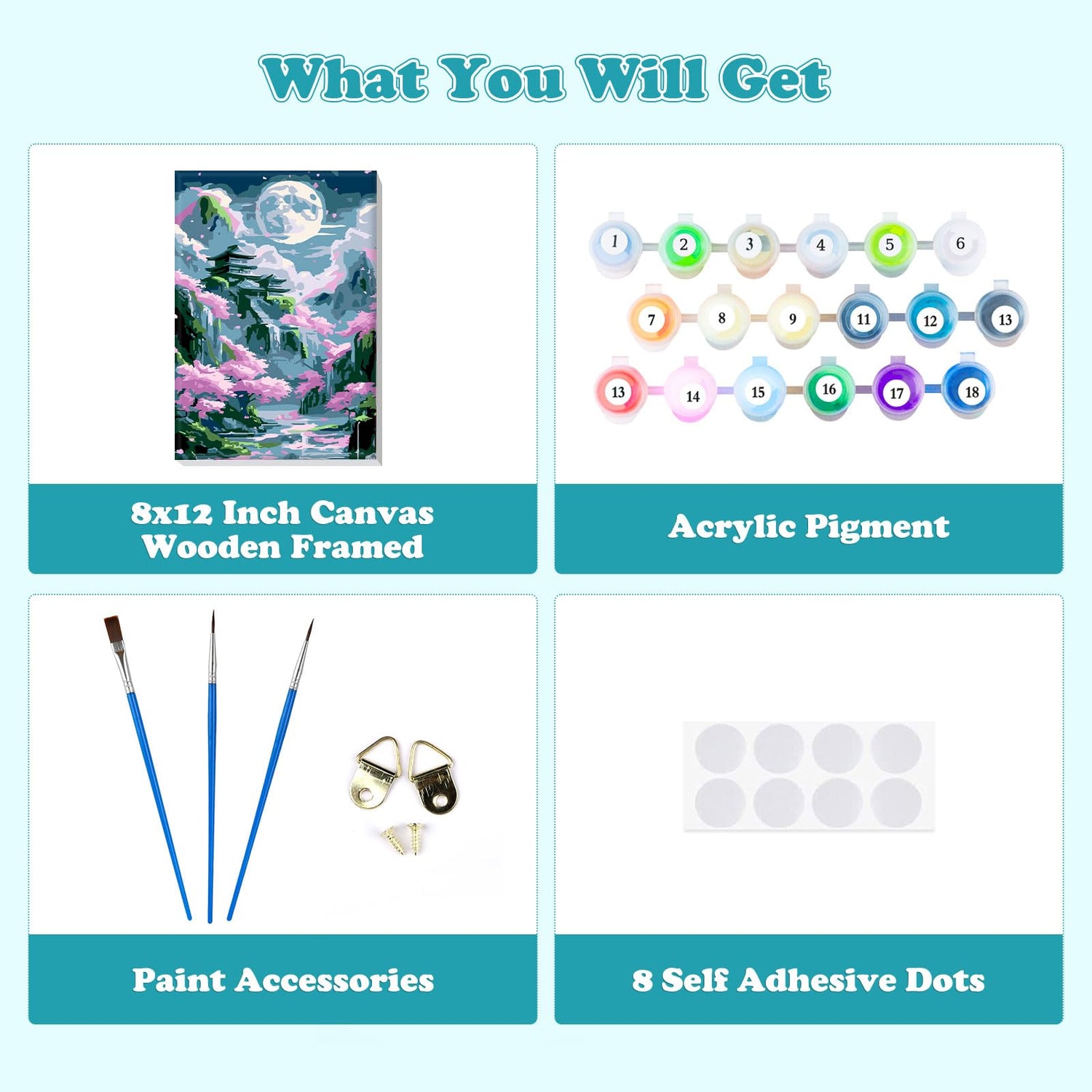 - High Quality Acrylic Pigments: The paint we provide are made of safe and healthy acrylic paint, which can use it with confidence. Moreover, the acrylic paint does not need to be diluted, and it can be used after opening, which is very convenient