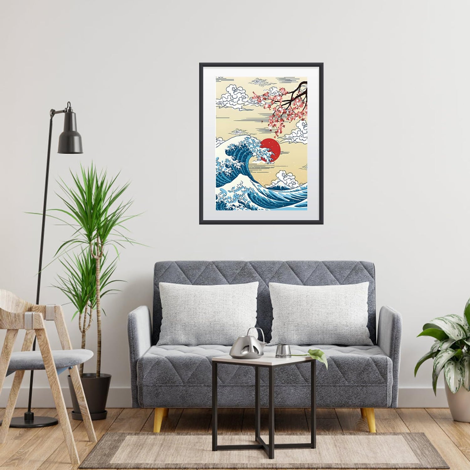 MOGTAA The Great Wave Diamond Art Kits for Adults, Japanese Cherry Blossom Tree Diamond Painting Kits for Beginners, DIY 5D Diamond Dots Kits Sunset Gem Craft for Home Art Decor 12x16 inch