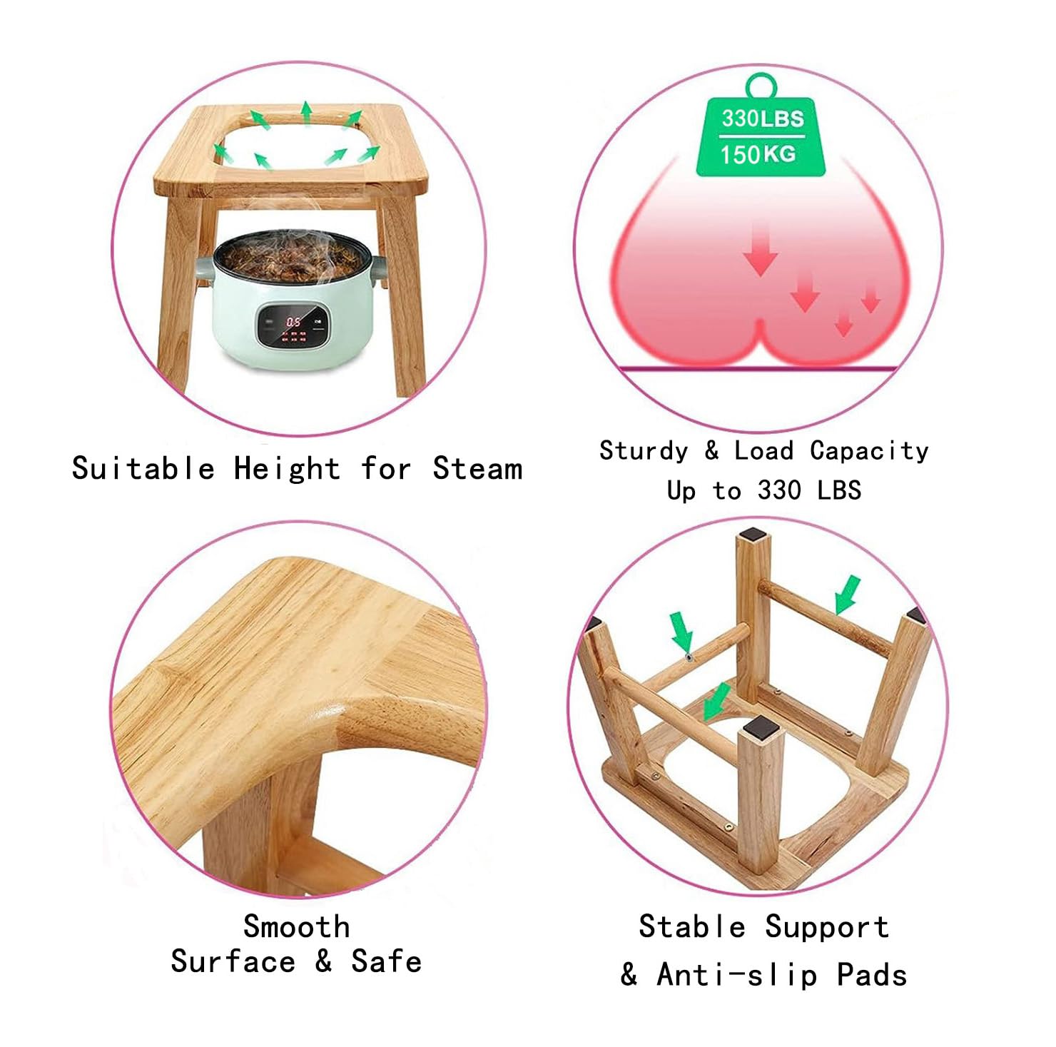 MOGUOBIN Wooden Steam Seat with Four Legs,Yoni Steam Chair,Yoni Steam Pot,Three-Dimensional Toilet,Heavy Bathroom Anti-Skid Shower Stool,Steaming Chair V Steam at HOM Eattachment 15.7" H (No Steamer)