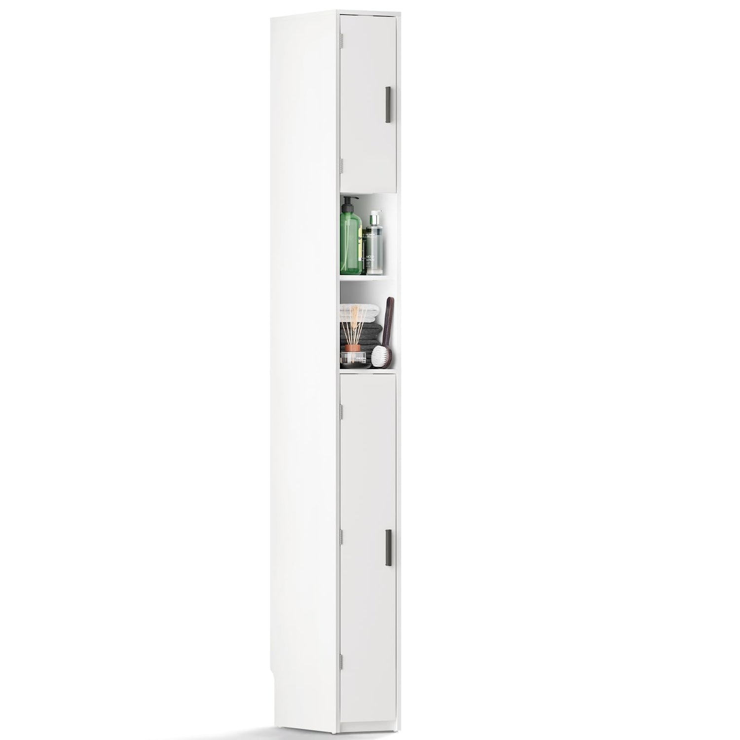 MOHOPE Narrow Bathroom Storage Cabinet - Tall Bathroom Cabinet with 2 Doors and Adjustable Shelves, Open Compartments, Slim Freestanding Cabinet for Small Space and Toilet, White