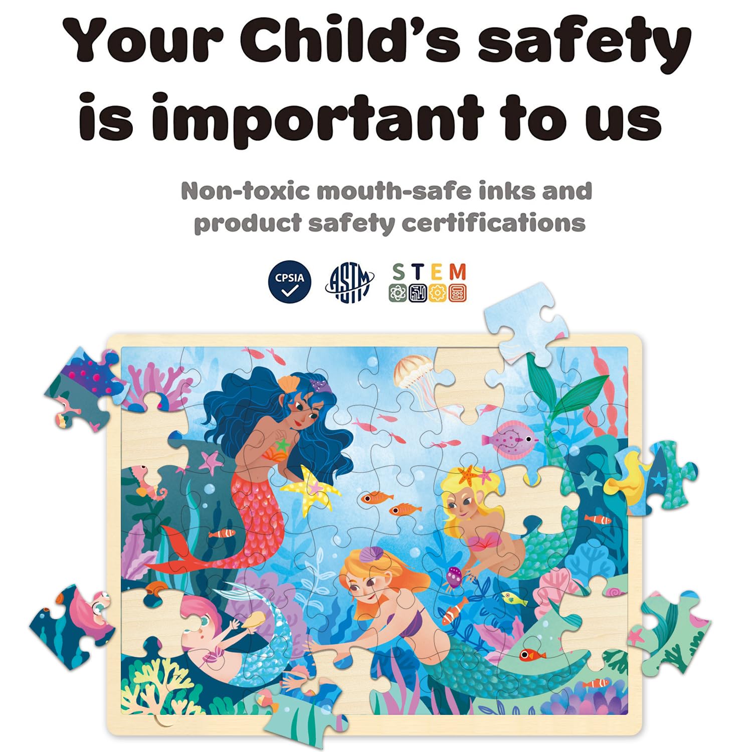 - PREMIUM QUALITY: Safety always comes first. Our 48 piece puzzles for kids ages 4-8 use fine slicing techniques. Smooth edge comes without burrs to protect kids’ hands. The toddler puzzles ages 3-5 meet CPSIA and ASTM safety regulations. Safety test approved.