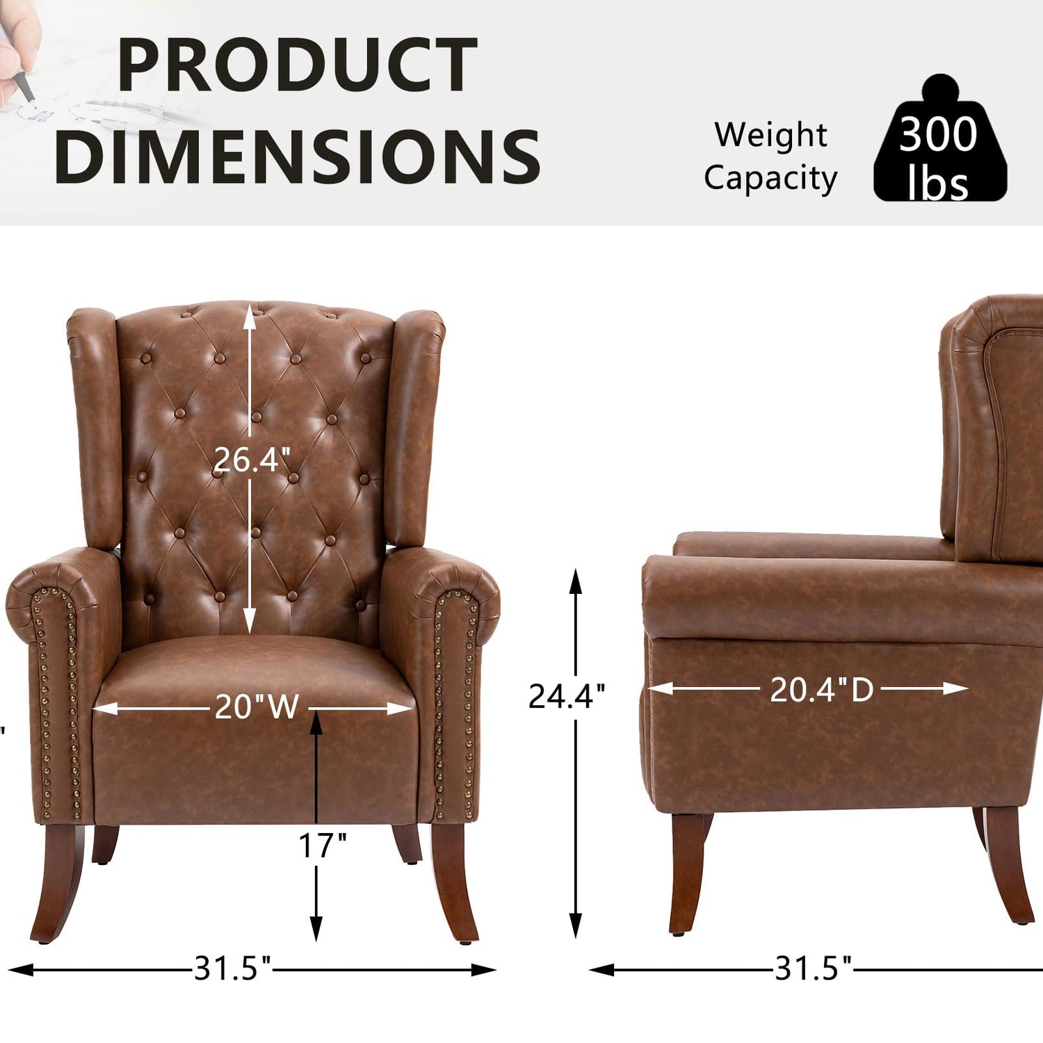 - 🦚 PREMIUM MATERIALS: The Mid-Century accent chair is crafted with select PU leather and a high-density sponge, ensuring a comfortable and breathable experience. The button wingback and studded trim design elements add appeal and class to your home.