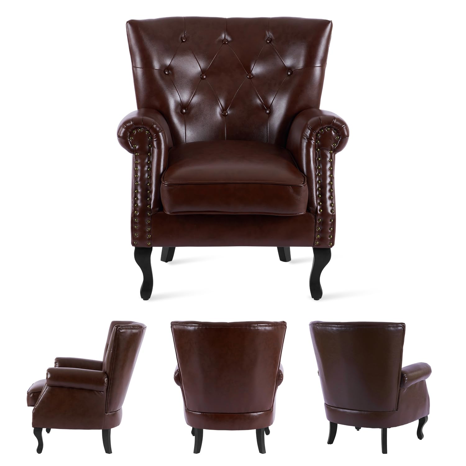 - PREMIUM PU LEATHER: Our accent chair is upholstered in high-quality PU leather that is soft to the touch and easy to clean, ensuring durability and longevity.