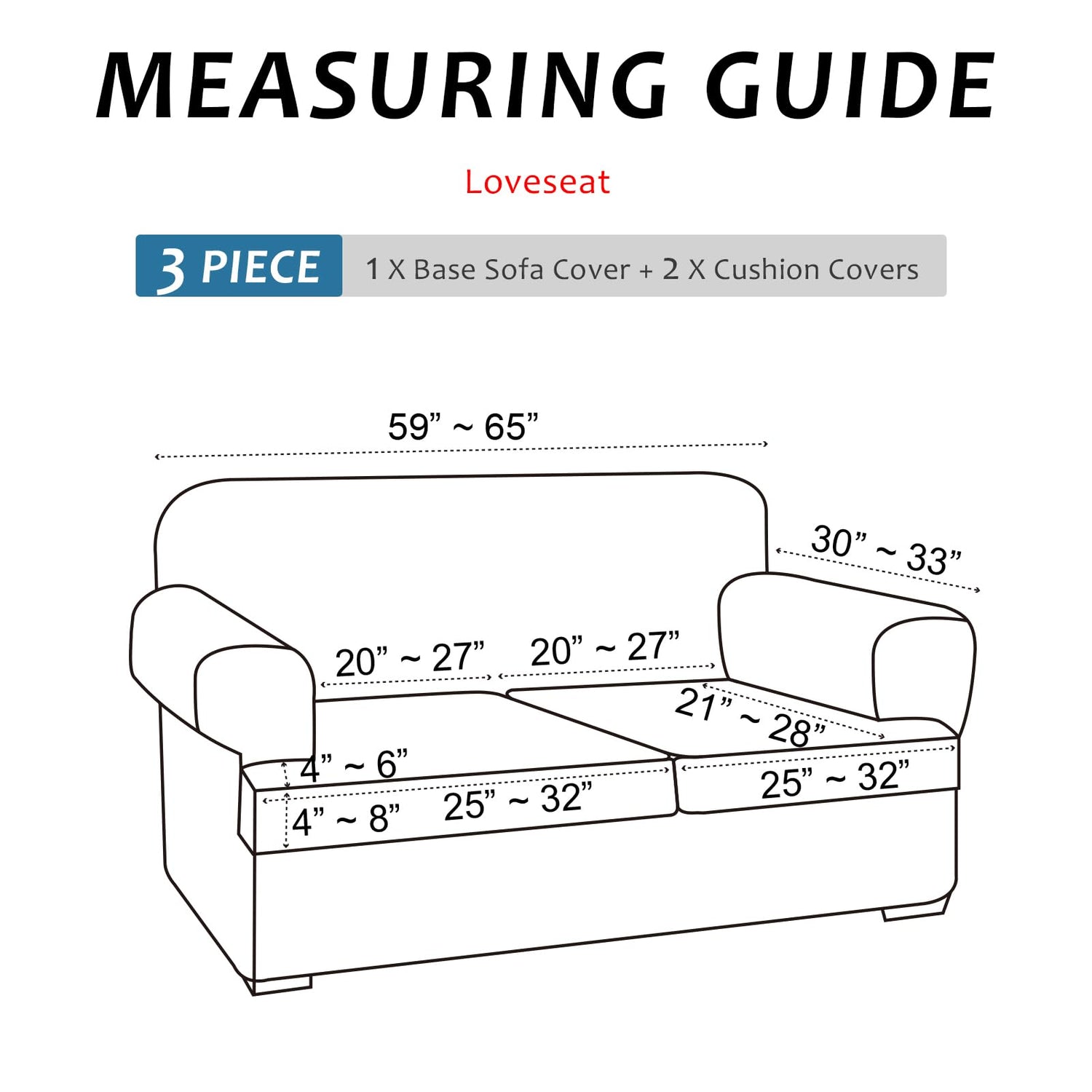 - 3 PIECE STYLE: These creative 3 PIECES t cushion loveseat slipcovers are sophisticated designed, including 1 piece of base cover and 2 individual T cushion covers.Best fit Loveseat between 58"-72" inches wide (left arm to right arm outside, straight across). High recommended for both leather and cloth furniture.