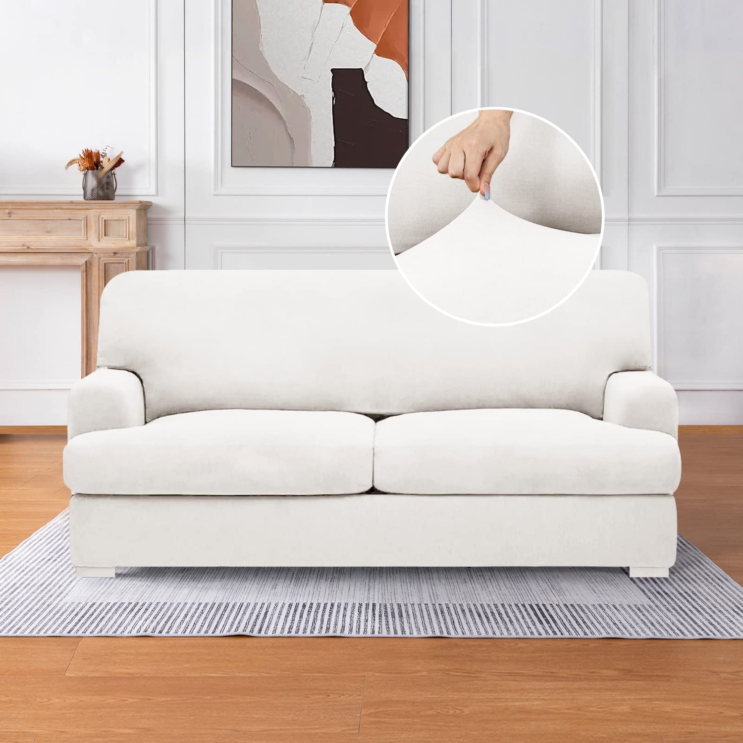 molasofa T Cushion Loveseat Slipcover with 2 Individual T Cushion Shape Seat Covers for Home Décor, 3 Pieces Stretchable, Washable, Non-Pilling, Non-Slip Loveseat Covers (Loveseat,White)