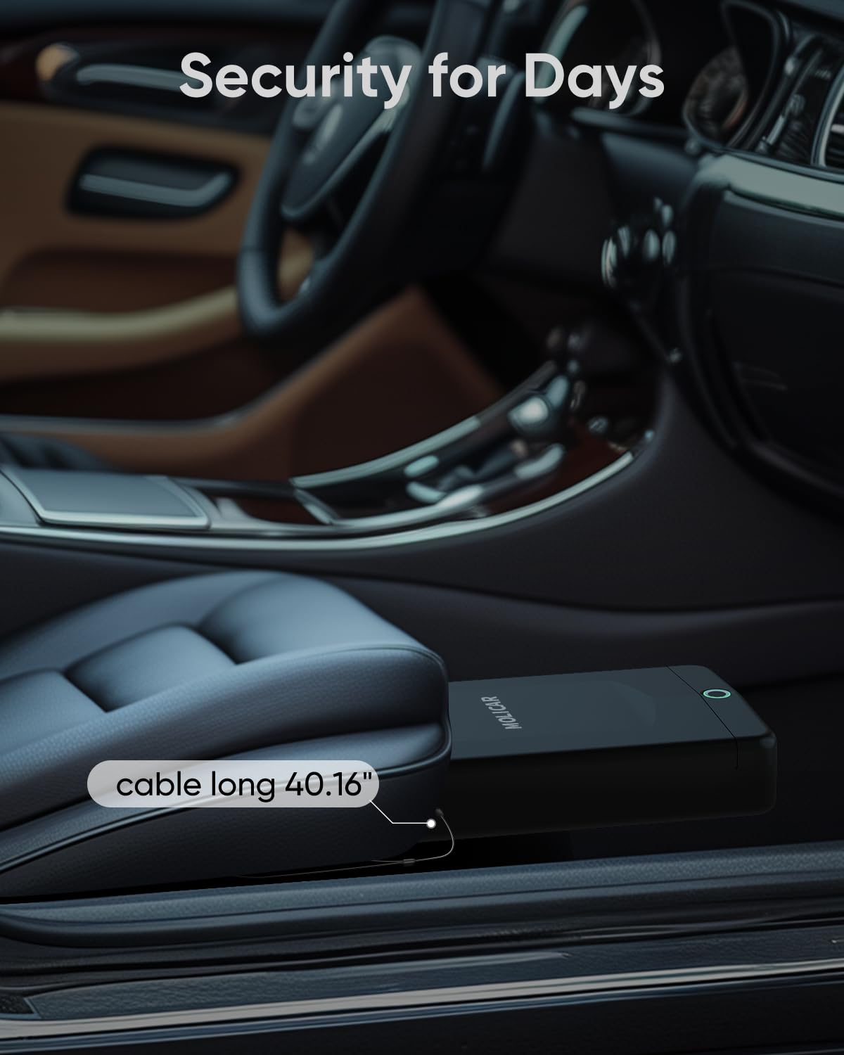 - Security for Car: This car gun safe comes with a 40.16" steel security cable, It's small enough to slide under a seat and will also work well in your room, cabled to bed.