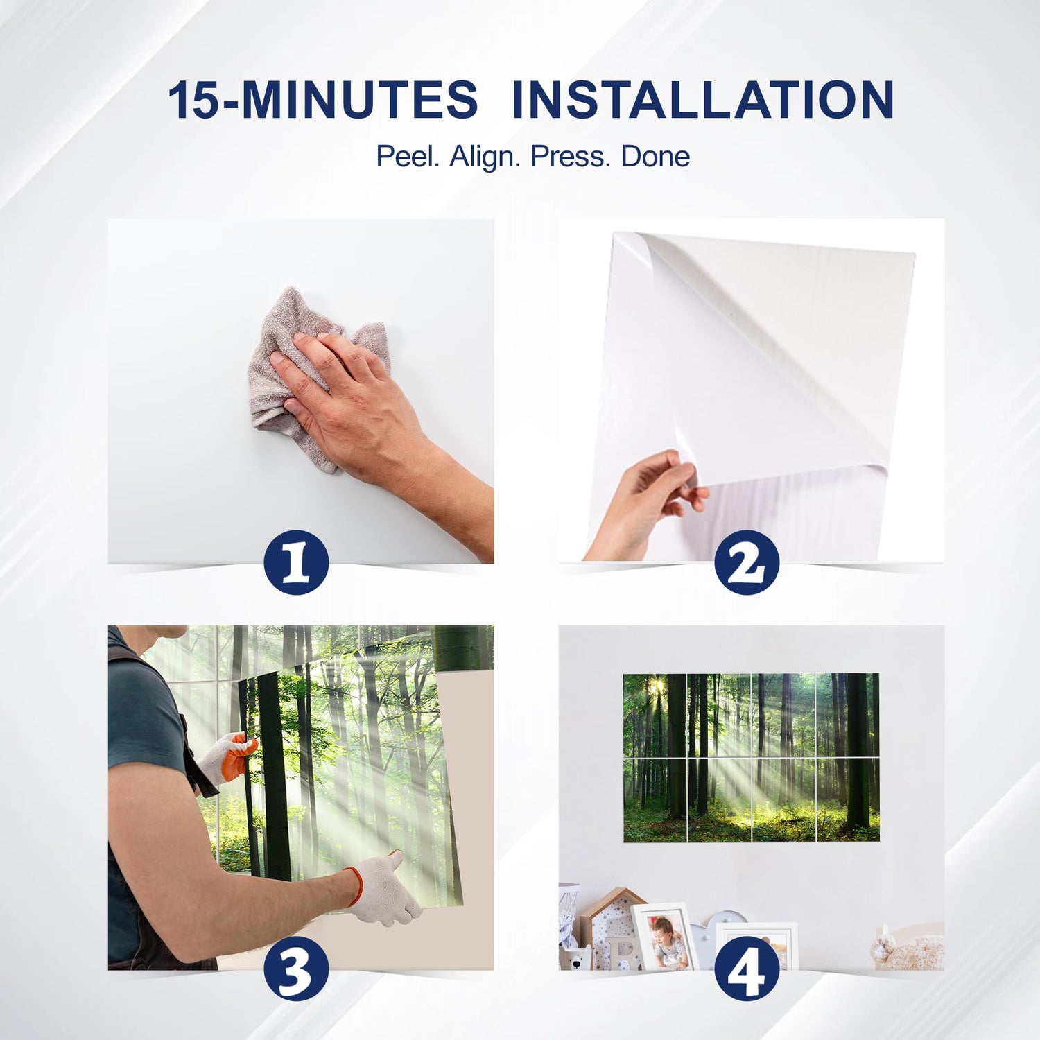 - FOOLPROOF INSTALLATION: Achieve seamless 48x32" artwork in 3 simple steps (measure-mark-press) within 15 minutes; Industrial adhesive bonds permanently after 30-second pressure by award-winning artists elevates modern interiors frequency noises hold while absorbing 60% of mid-high