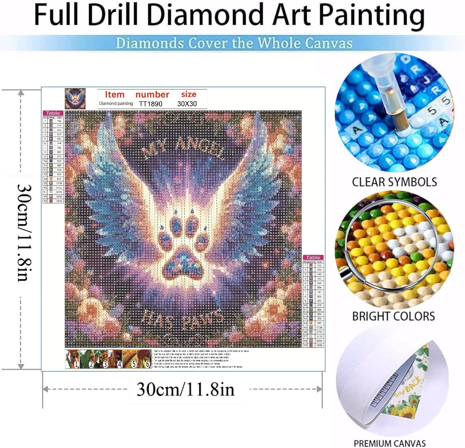 - 【DIAMOND ART WALL DECOR】This Angel Paws Diamond art painting kits perfect to decorate your living room, Full drill diamond art kits for adults ,Perfect to decorate your bedroom, office, restaurant.Gem art for adults is also an good choice for friends and family on birthdays, Halloween,Thanksgiving,Themed party, Fall,Christmas and other holidays. This diamond art kits is easy to use by adults, and beginners in art. You only need to paste the diamond on the corresponding number on the canvas to get your own masterpiece!