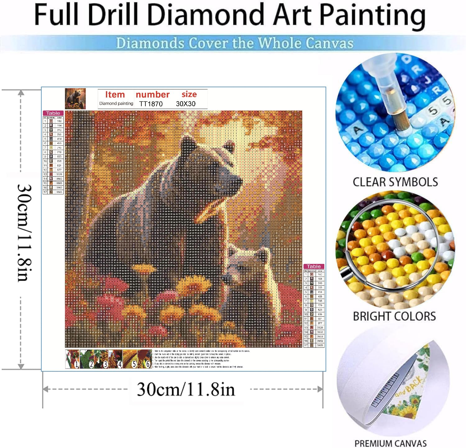 - 【DIAMOND ART WALL DECOR】This Bear Diamond art painting kits perfect to decorate your living room, Full drill diamond art kits for adults ,Perfect to decorate your bedroom, office, restaurant.Gem art for adults is also an good choice for friends and family on birthdays, Halloween,Thanksgiving,Themed party, Fall,Christmas and other holidays. This diamond art kits is easy to use by adults, and beginners in art. You only need to paste the diamond on the corresponding number on the canvas to get your own masterpiece!