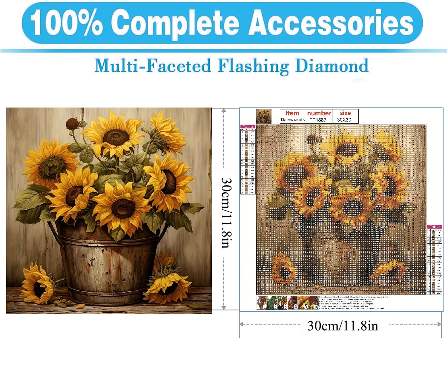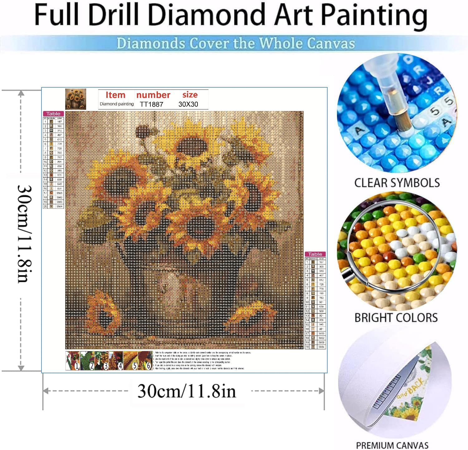- 【DIAMOND ART PAINTING FOR BEGINNERS】5d sunflowers diamond painting for adults including 1x high definition painting canvas;1 color coded rhinestones;1point diamond painting pen;1craft tray;1 clay glue;10 self-sealing bags.We provide an extra 30% beads to ensure that the Christmas Diamond Painting Kits can be completed smoothly.