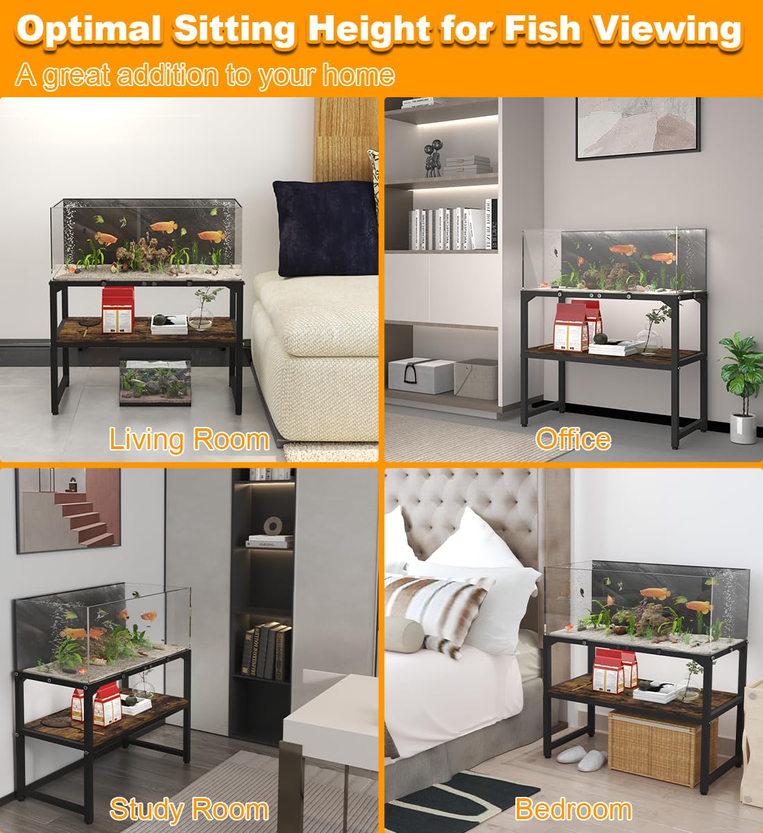 - Wide Application: The breeder tank table stand is not only suitable for placing aquariums in homes, offices, and study rooms but can also be used as a decoration in living rooms and bedrooms, such as displaying flower pots, ornaments, and other items to enhance the spatial decorative effect. It is an ideal choice for you