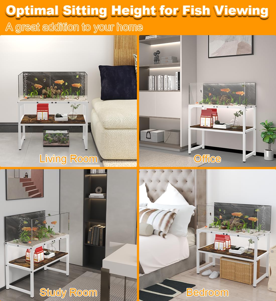 - Wide Application: The breeder tank table stand is not only suitable for placing aquariums in homes, offices, and study rooms but can also be used as a decoration in living rooms and bedrooms, such as displaying flower pots, ornaments, and other items to enhance the spatial decorative effect. It is an ideal choice for you