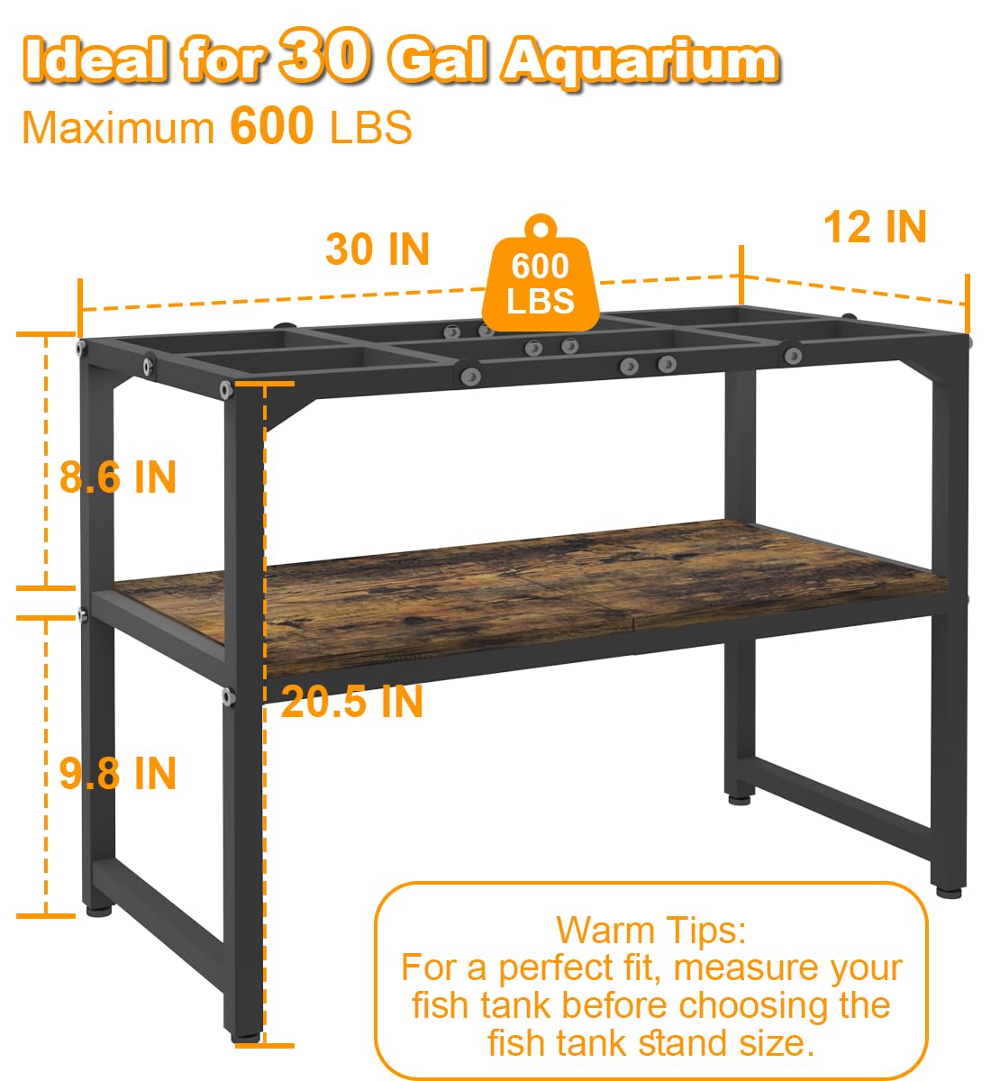 ·Measures 30’’L x 12‘’W, fits a 30-gallon aquarium, and supports up to 600 pounds.