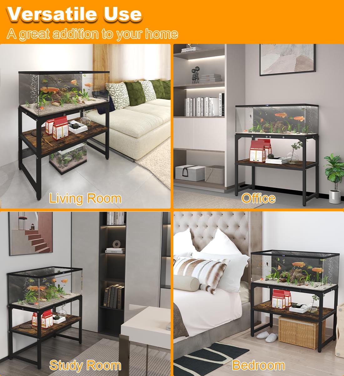 - Wide Application: The breeder tank table stand is not only suitable for placing aquariums in homes, offices, and study rooms but can also be used as a decoration in living rooms and bedrooms, such as displaying flower pots, ornaments, and other items to enhance the spatial decorative effect. It is an ideal choice for you