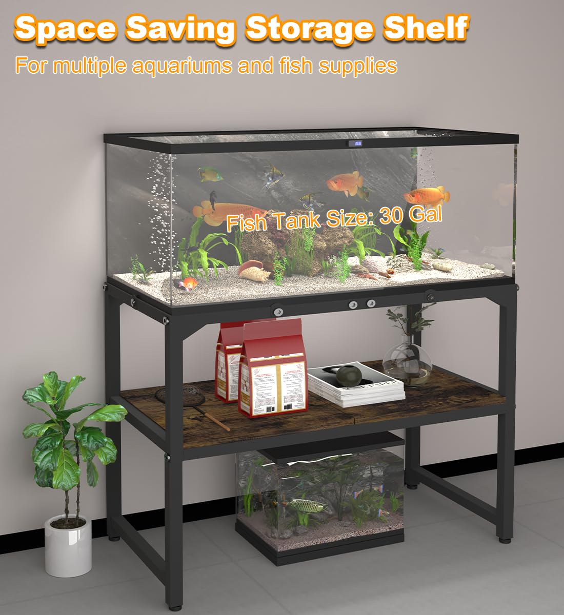 Details: AnBaiMei 30-gallon fish tank stand features a 2-tier design, saving space!