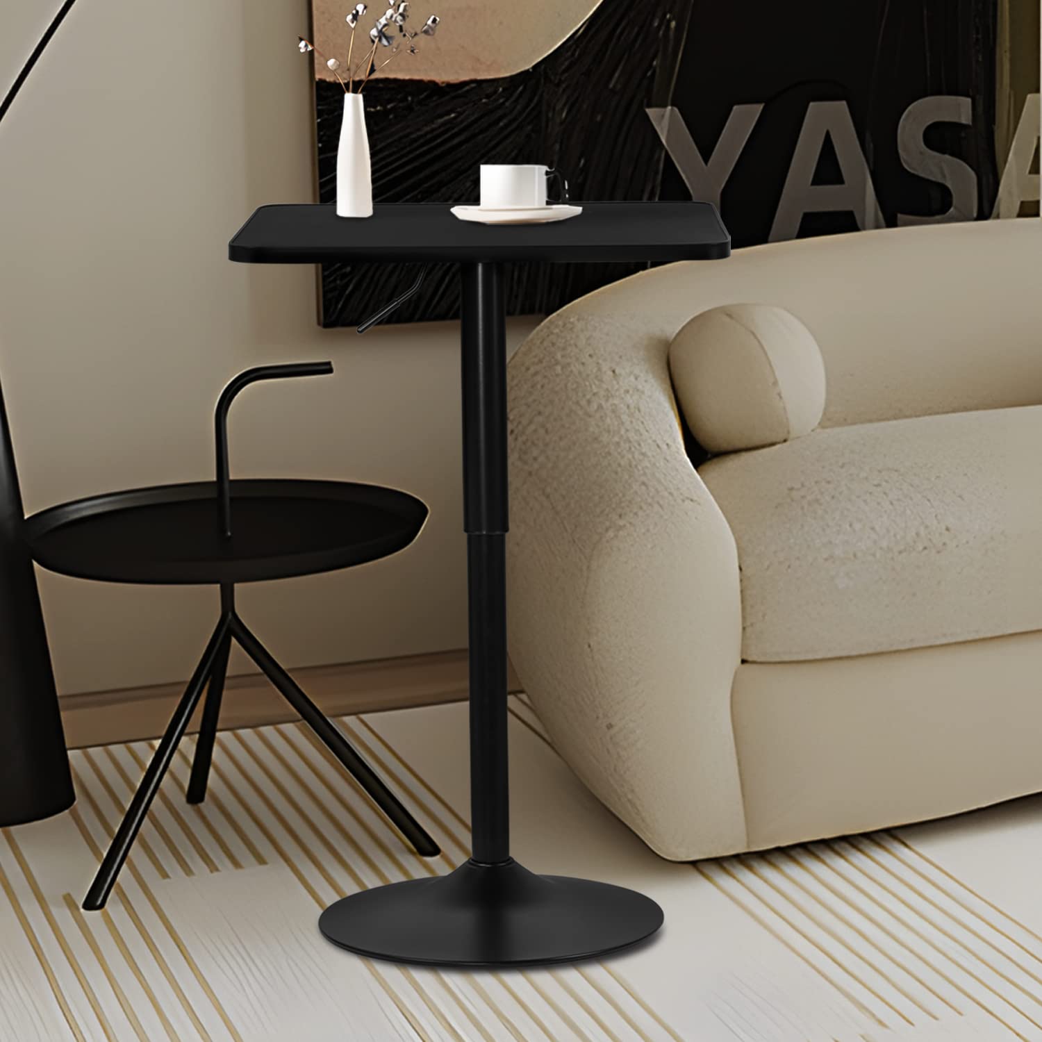 MoNiBloom Square Bar Table Kitchen Dining Table High Top Table for Home Balcony Indoor Outdoor Bistro Table 27.5"- 36" Height-Adjustable Cocktail Table, Black
