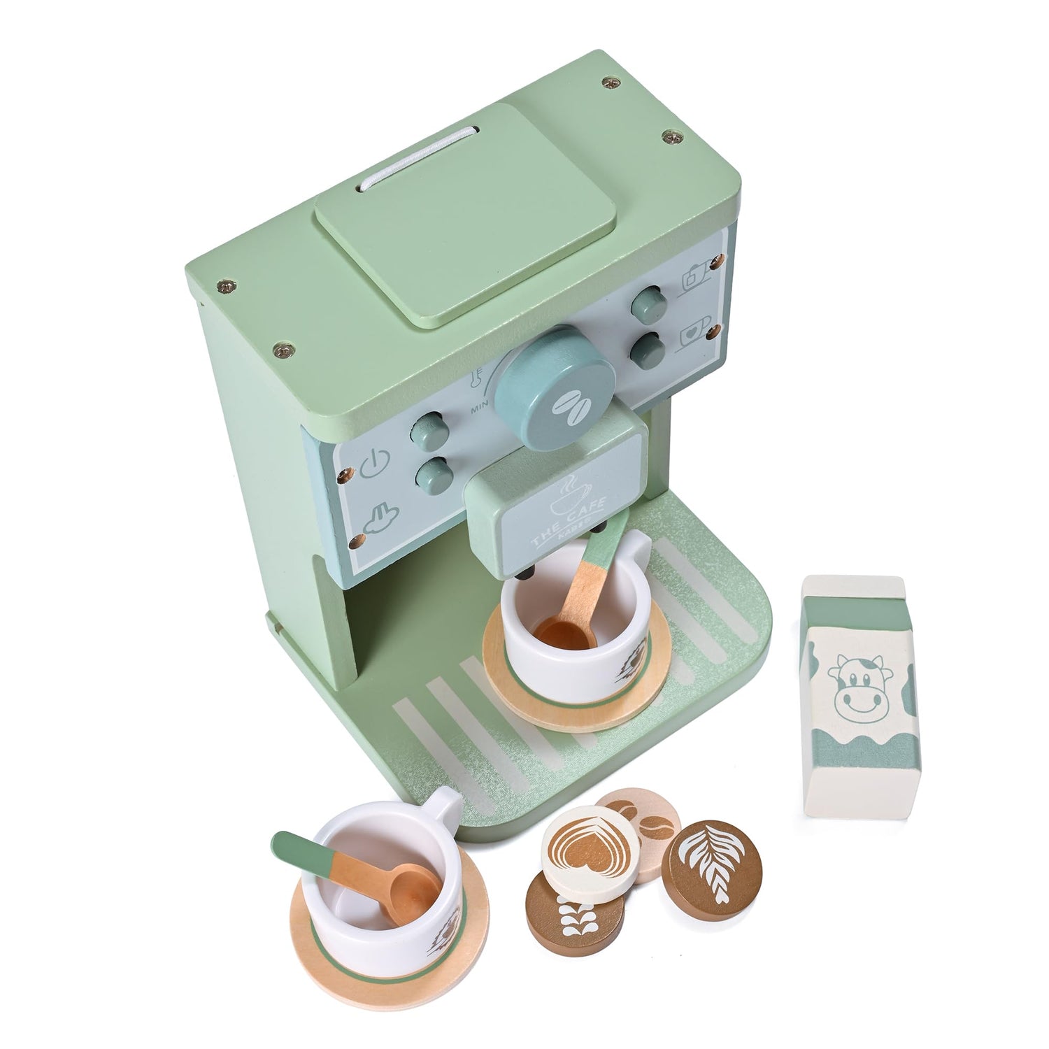 MONT PLEASANT Kids Wooden Toys Toddler Pretend Play Kitchen Accessories Green Coffee Maker Espresso Machine Playset Montessori Kitchen Toy Gift for Girls and Boys